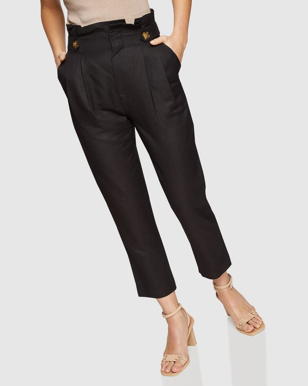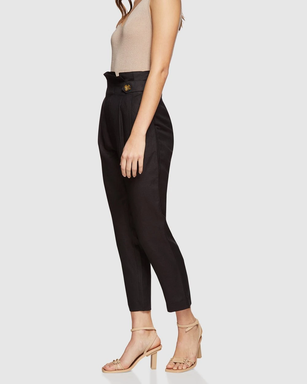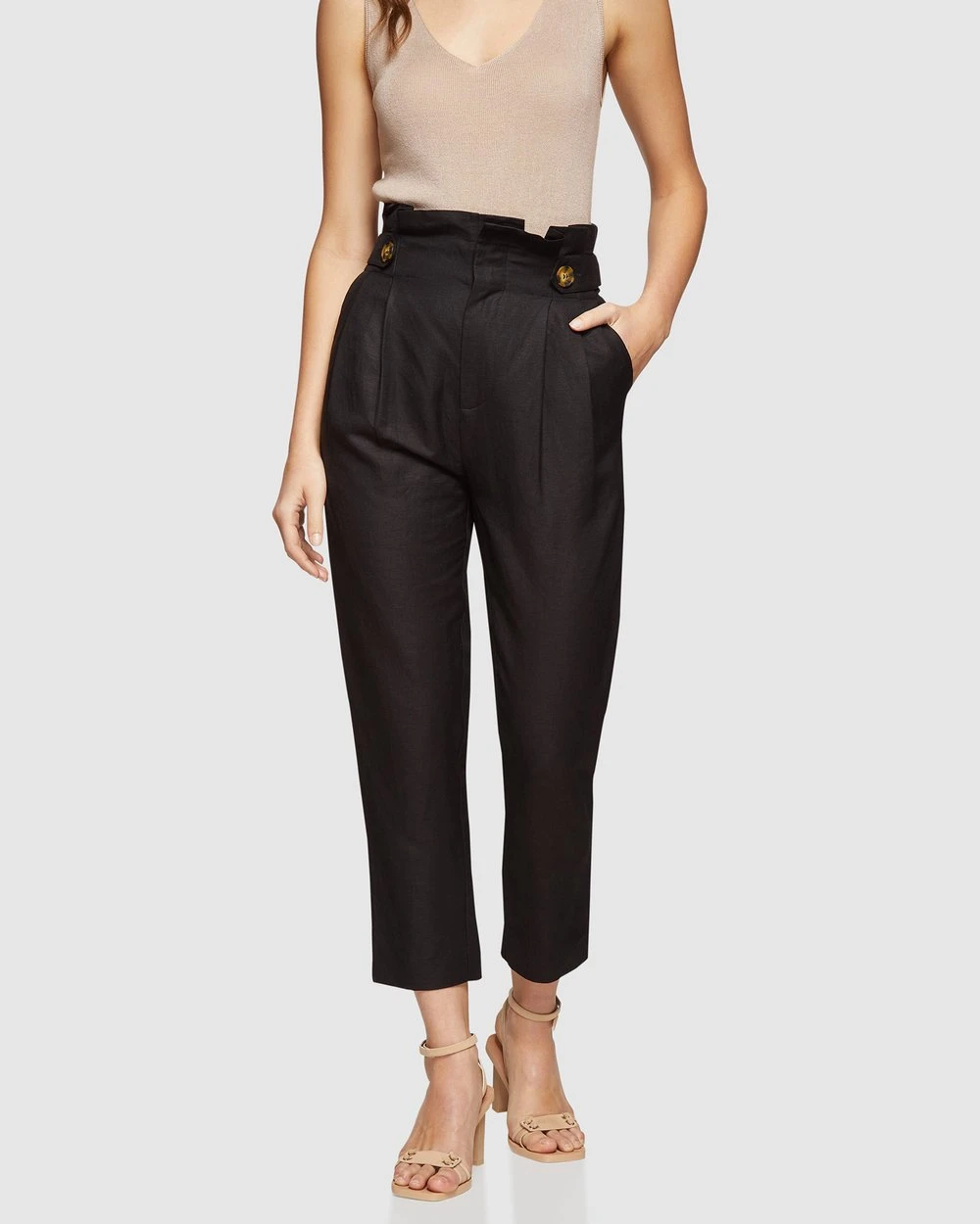 Make a statement at the office in the Oxford Evie Paperbag Trousers. These pants will be sure to flatter with paperbag waistline and cropped styling. Wear yours with a summer knit and heels and go from work to play.