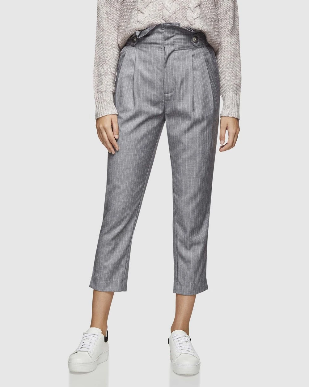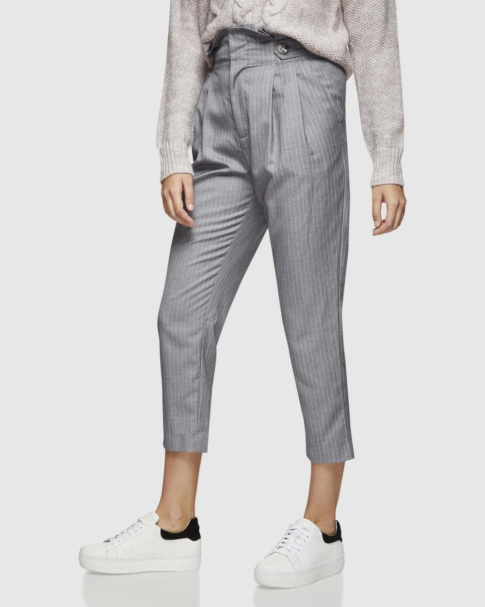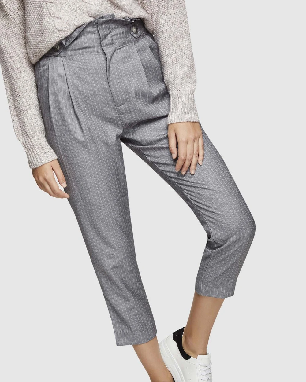 Make a statement at the office in the Oxford Evie Pinstripe Paperbag Pants. These pinstripe pants will flatter with a paperbag waistline and cropped styling. Wear yours with a knit and sneakers for a casual chic look on the weekend.