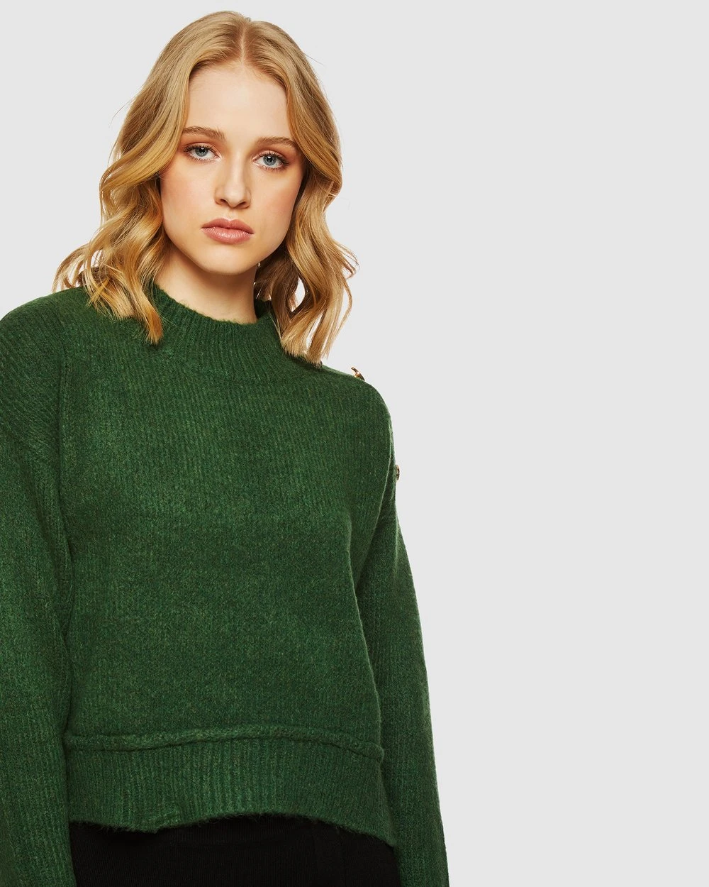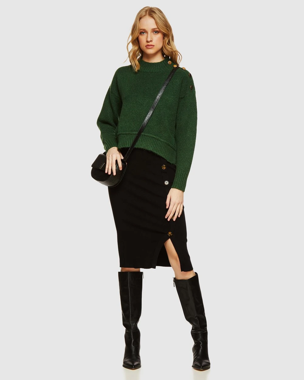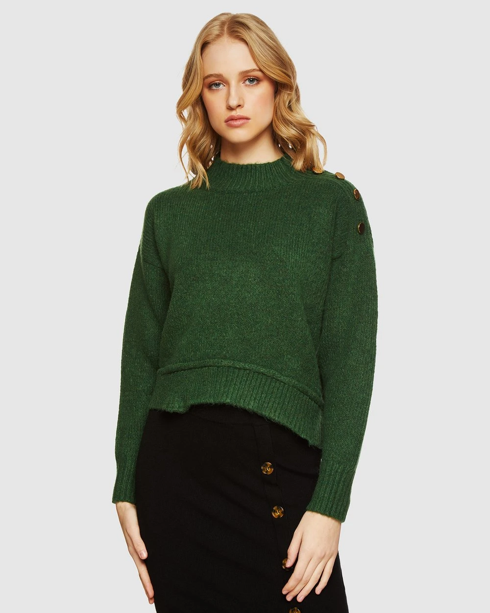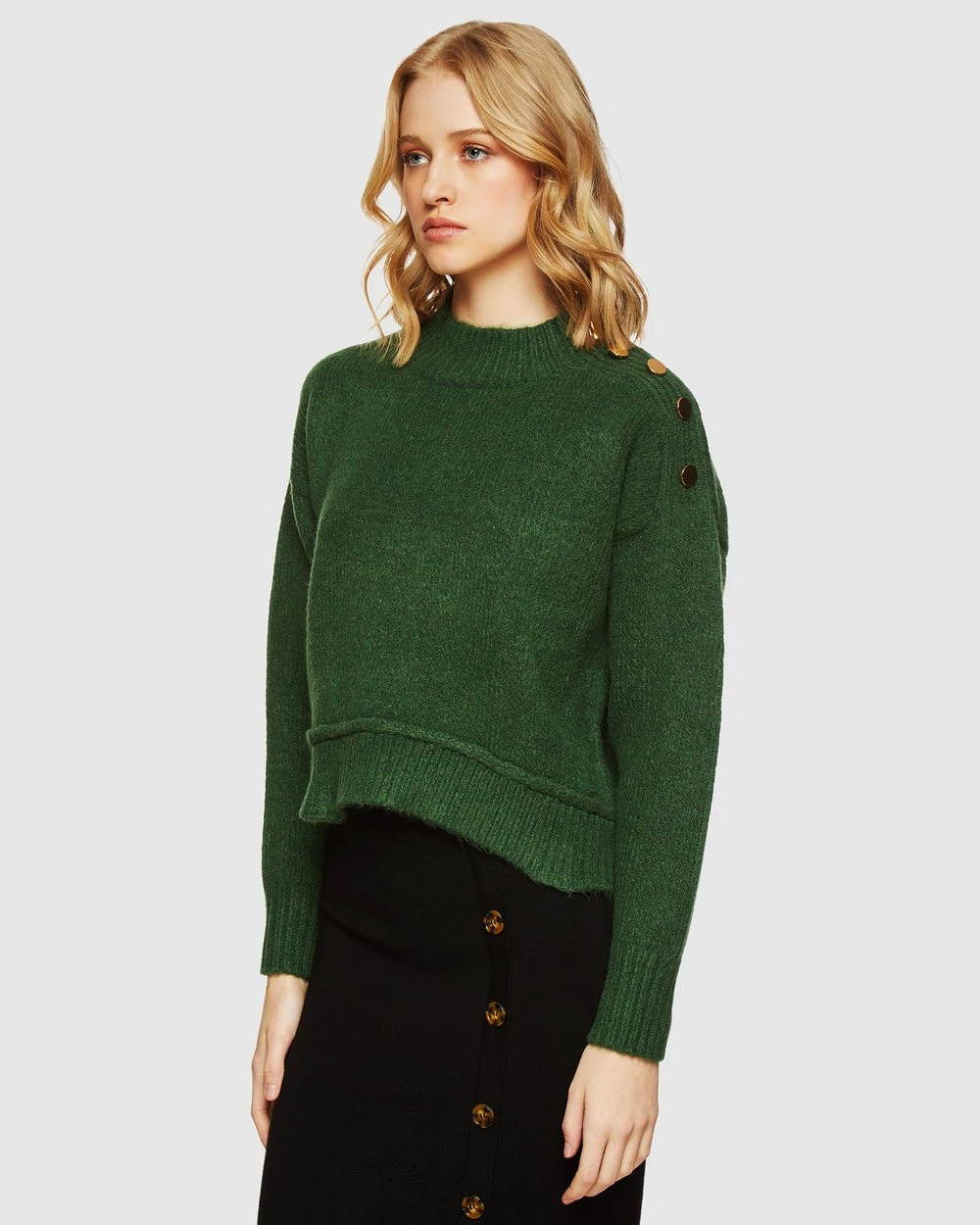 A statement knit for any occasion, the Oxford Fabienne Button Shoulder Knit will elevate your winter style. This relaxed fitting jumper features a smart shoulder button detail with shiny metallic buttons, a high neckline and large ribbed trims. Pair it back with a long skirt and knee-high boots for a look that will take you from work to the weekend.