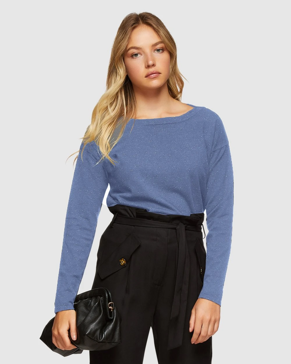 Add some sparkle to your look with the Oxford Gianna Metallic Boatneck Knit. This relaxed style has a boatneck with ribbed trims, and is crafted from a lightweight fabric that is embellished by a metallic thread for a dazzling touch. Wear it with some smart pants and boots for work or play.