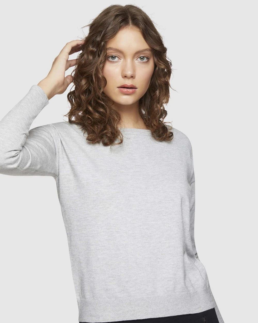 Add some sparkle to your look with the Oxford Metallic Boatneck Knit. This style features a fun metallic thread through the knit, boatneck and long sleeves. Go from desk to dinner with this knit by styling it with a chic leather skirt and heels.