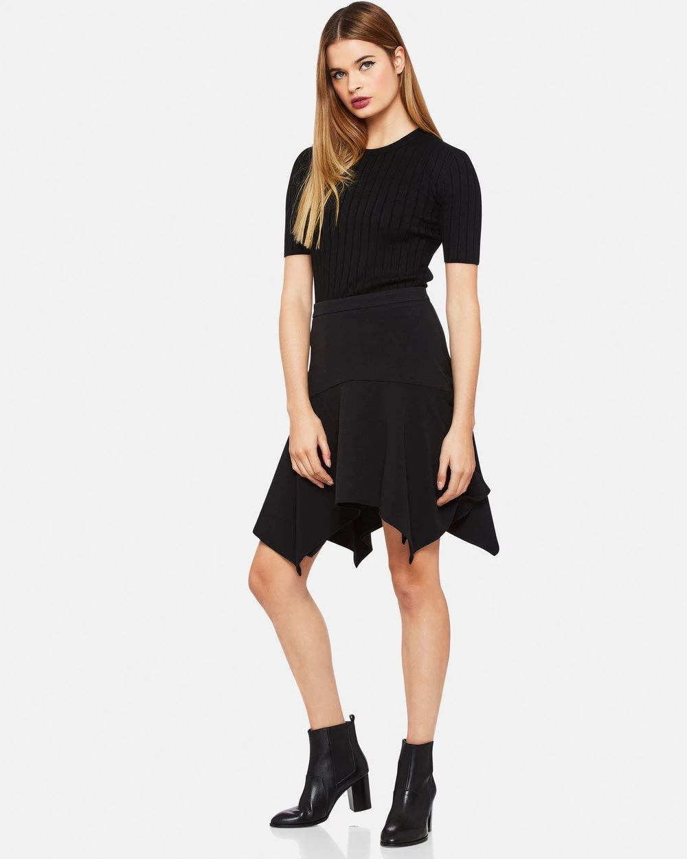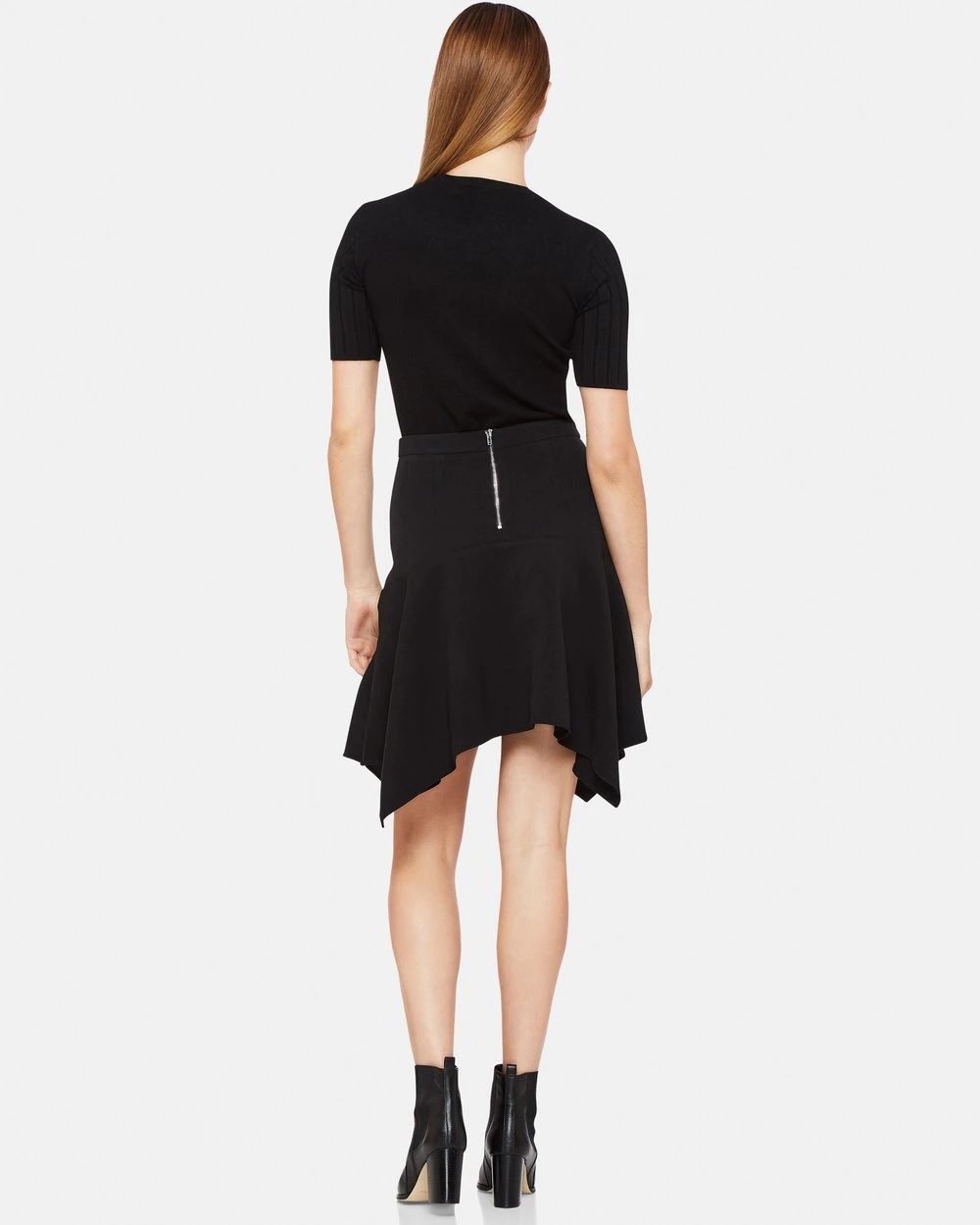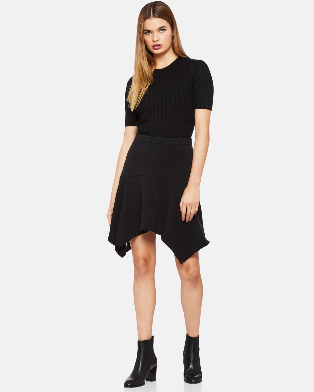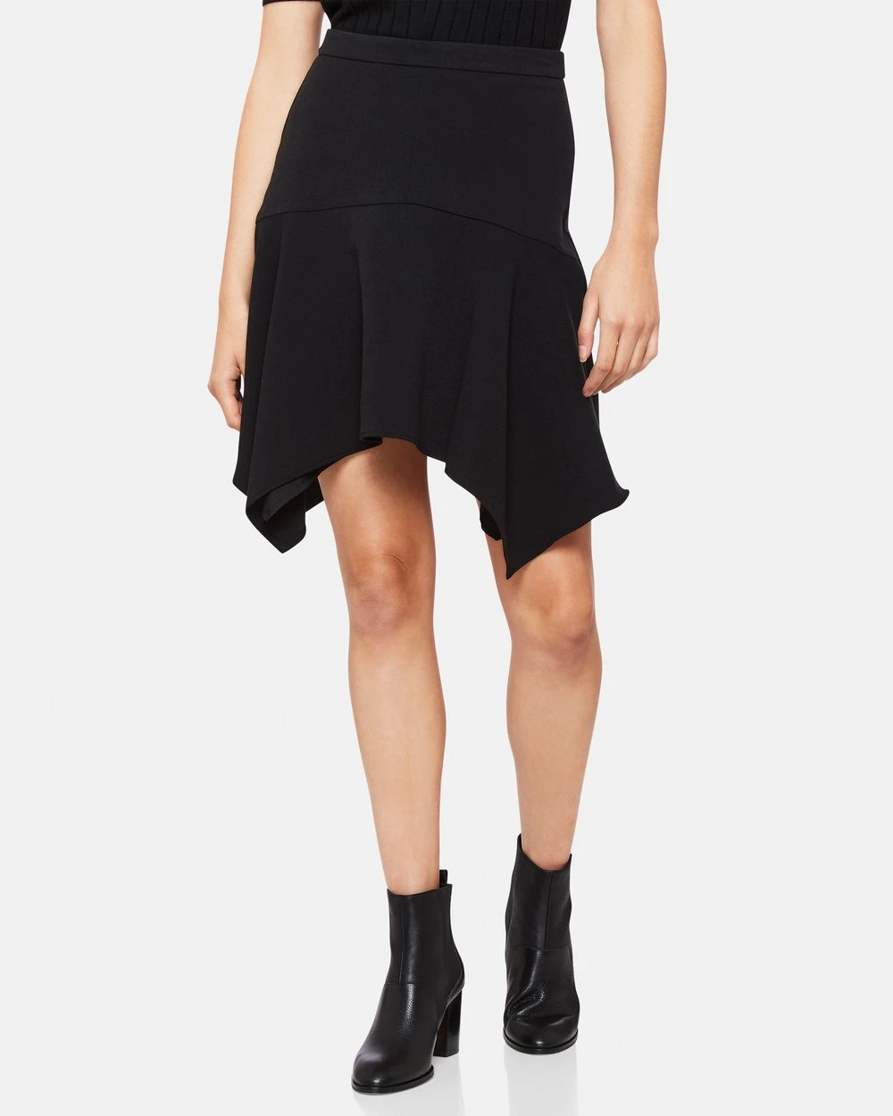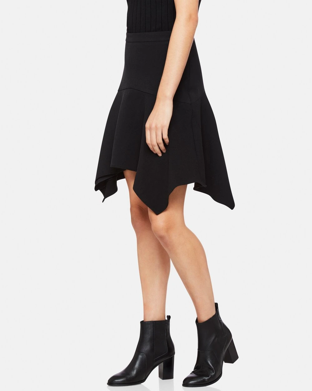 The Oxford Greensquare Skirt is a chic, and simple piece. Fitting close at the waist, the skirt falls to a handkerchief hem. We love it worn simply with ankle boots.