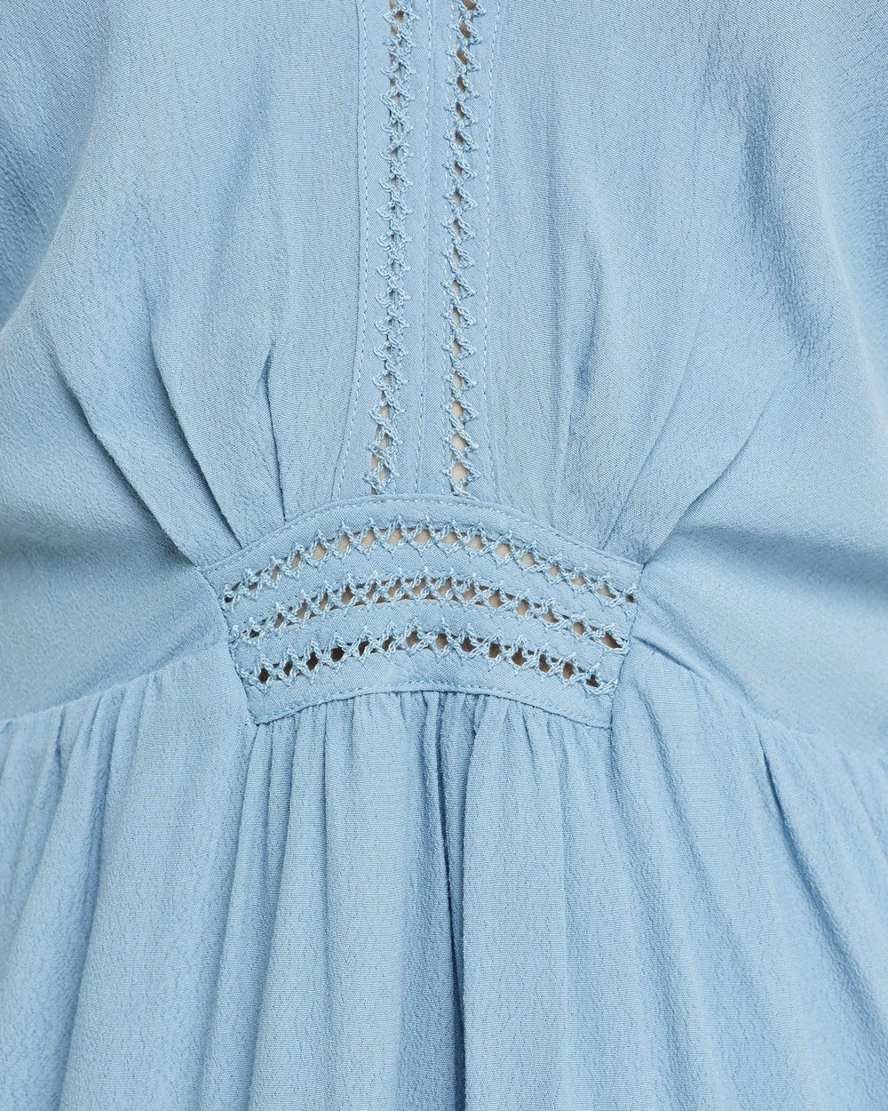 – Crochet detail, fitted waistline, attached slip