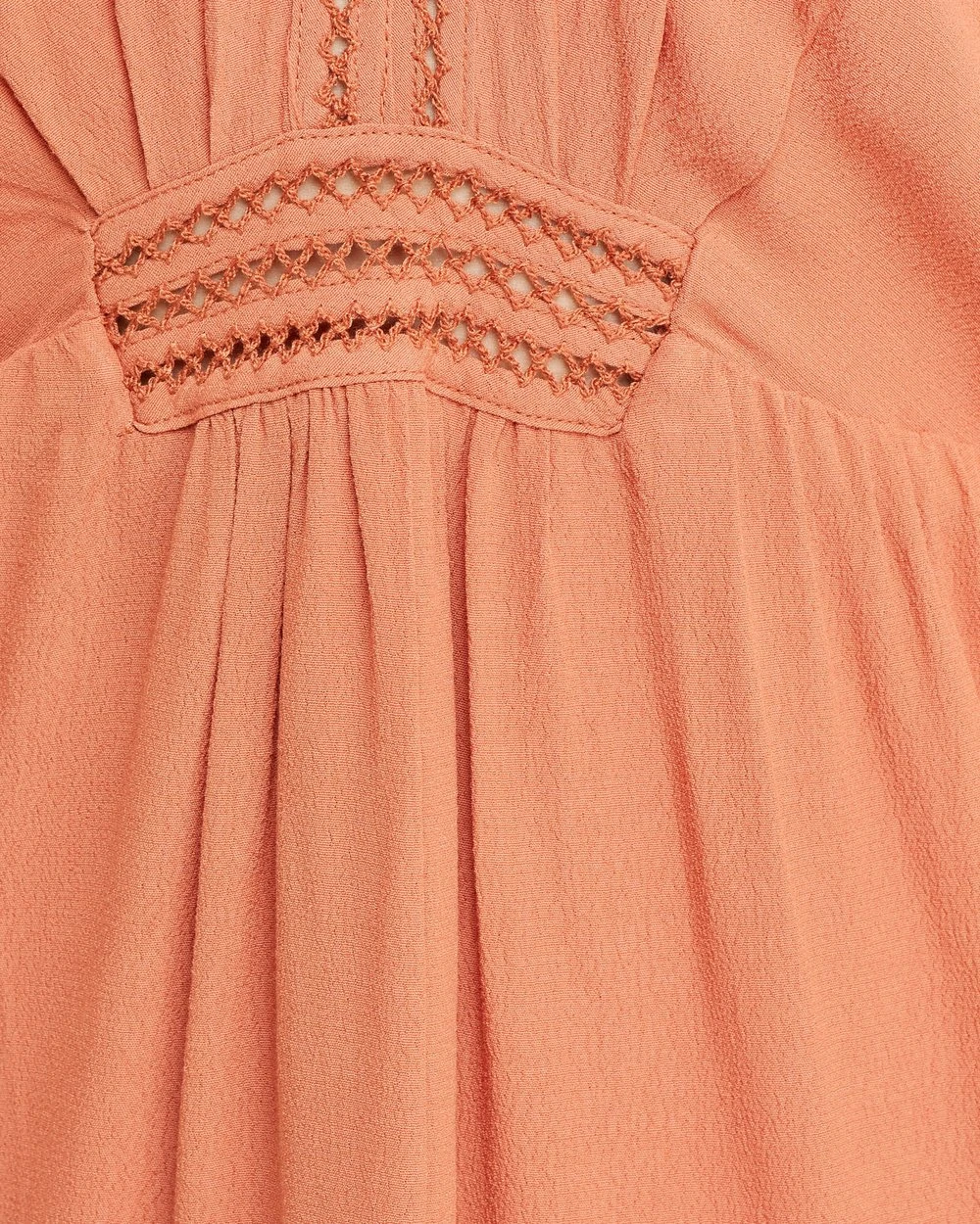 – Crochet detail, fitted waistline, attached slip
