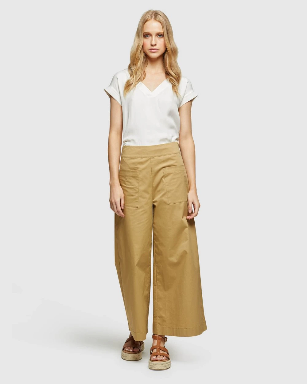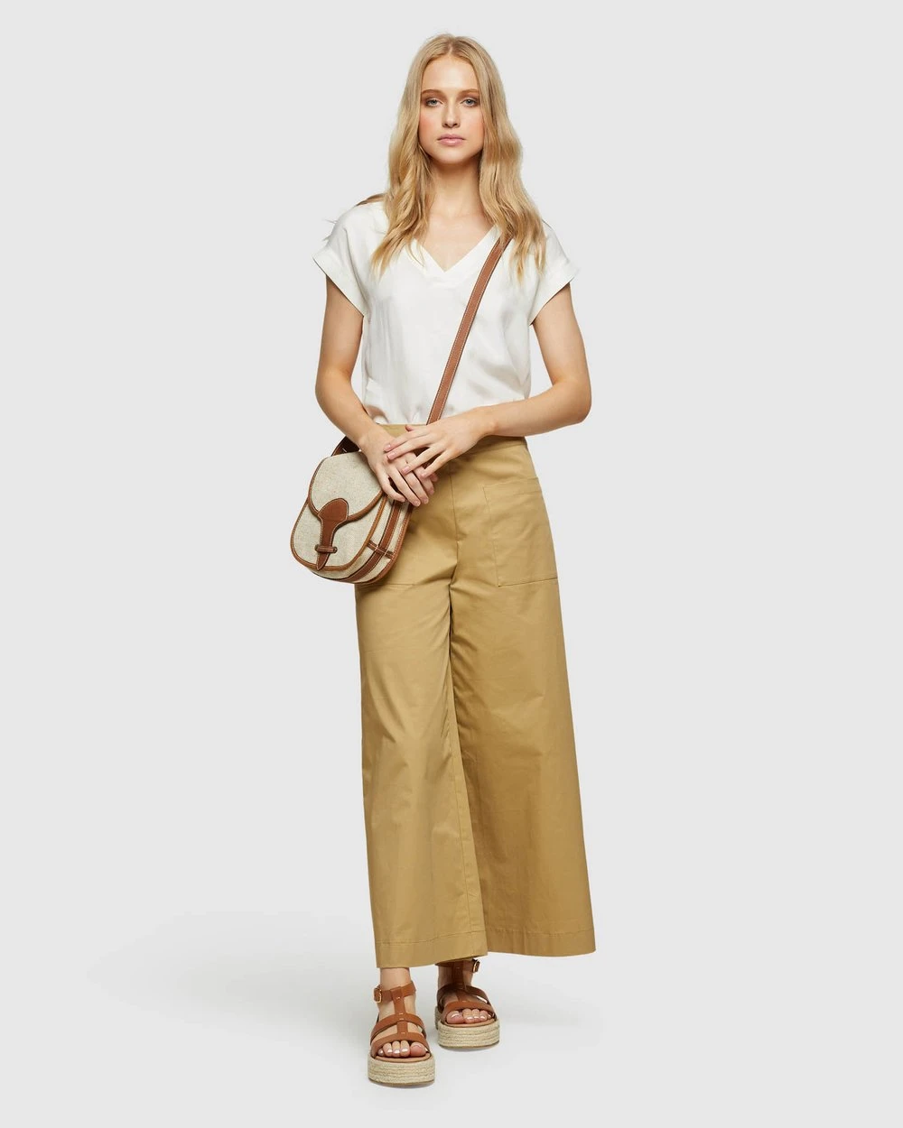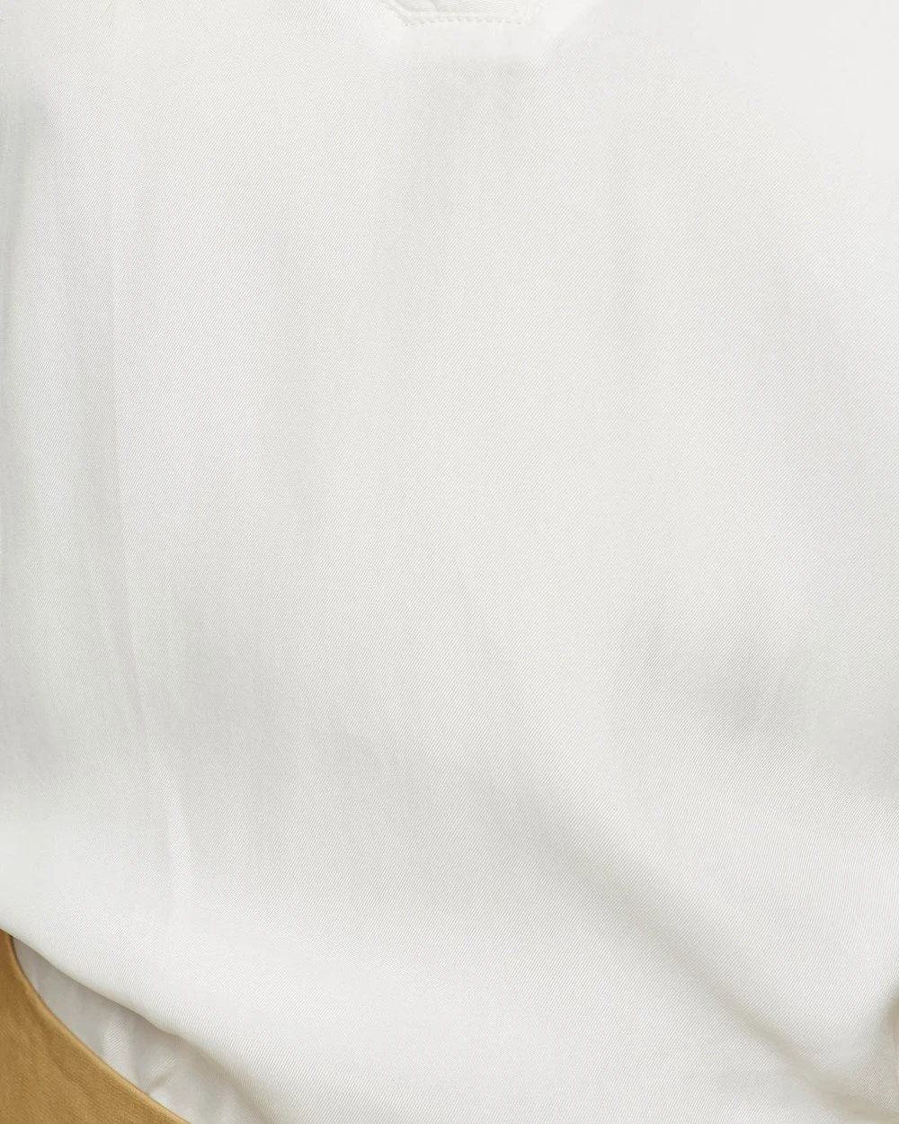 An understated and elegant basic, the Inga Woven Front T-Shirt by Oxford will work with just about any look. It has front and back contrasting fabric with a v neckline and capped sleeves.