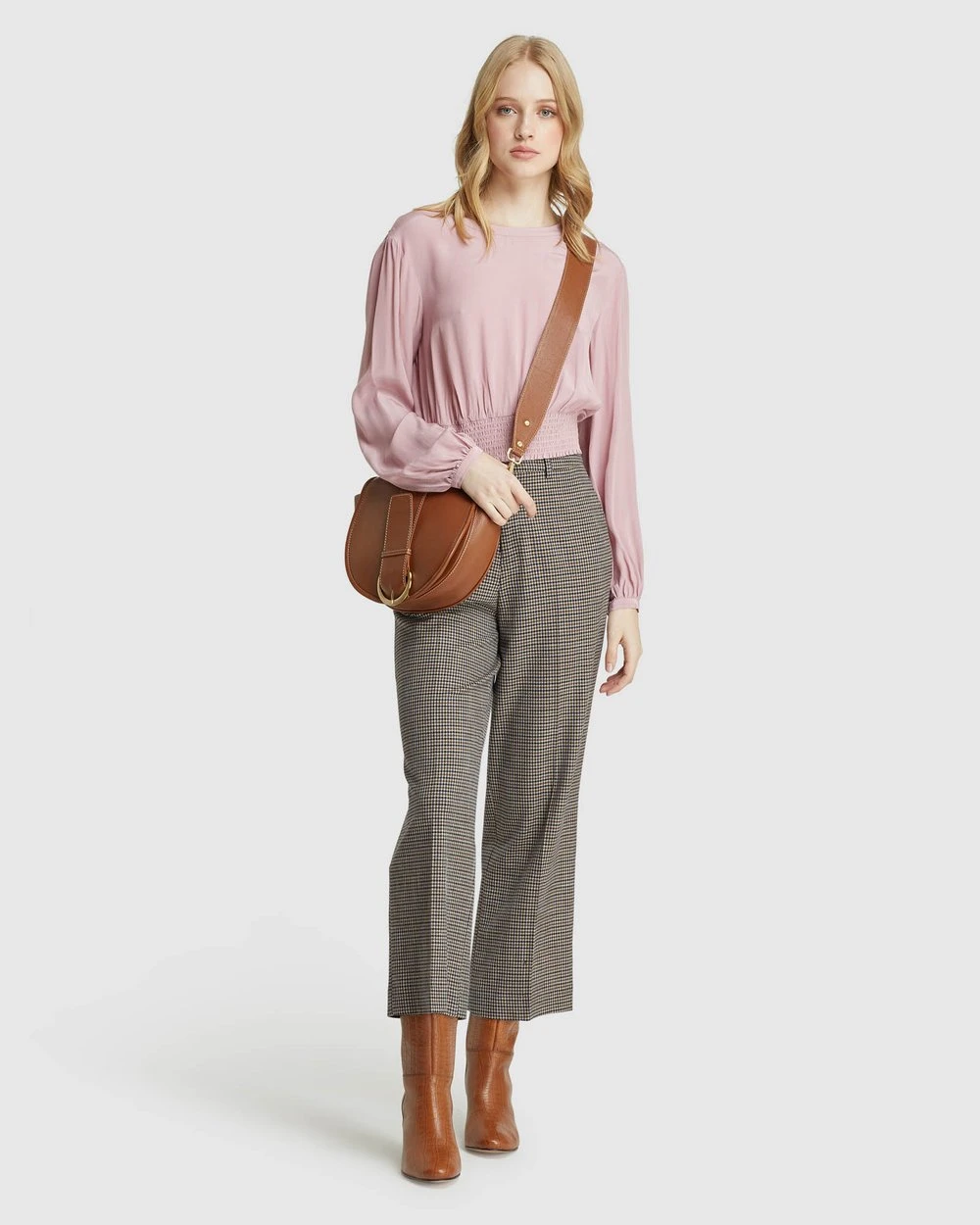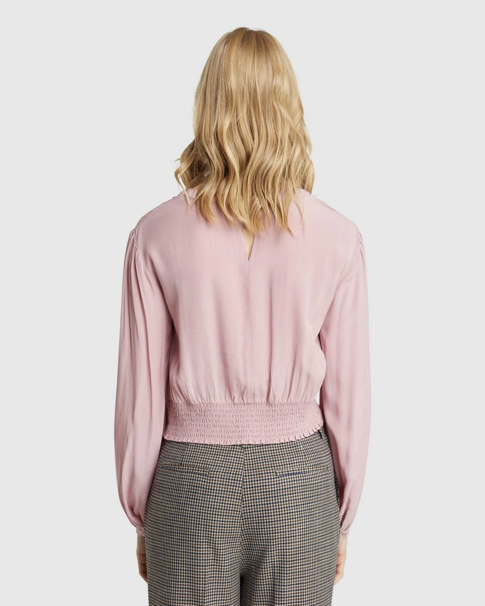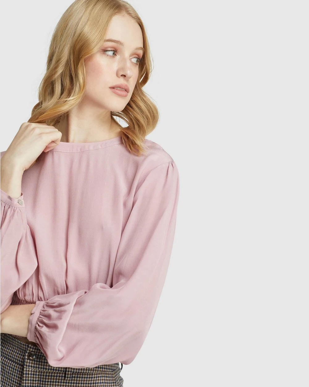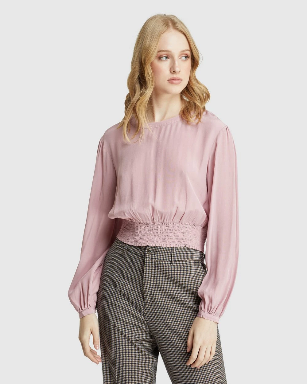 Effortless elegance, the Jade Crop Full Sleeve Top by Oxford is a versatile addition to your wardrobe. This understated style is cut in a relaxed fit from a lightweight fabric and has a touch of feminine flair with balloon sleeves, a ruffled elastic waist, cropped length and a slim button cuff.
