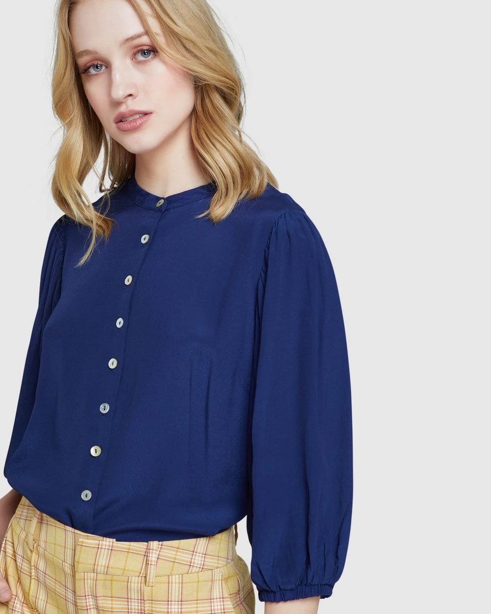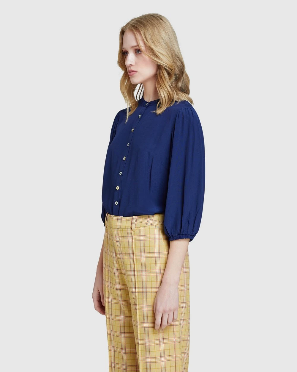 A graceful and understated style, the Jakaline Bubble Sleeve Top by Oxford has a relaxed and drapey fit with three-quarter length bubble sleeves.
