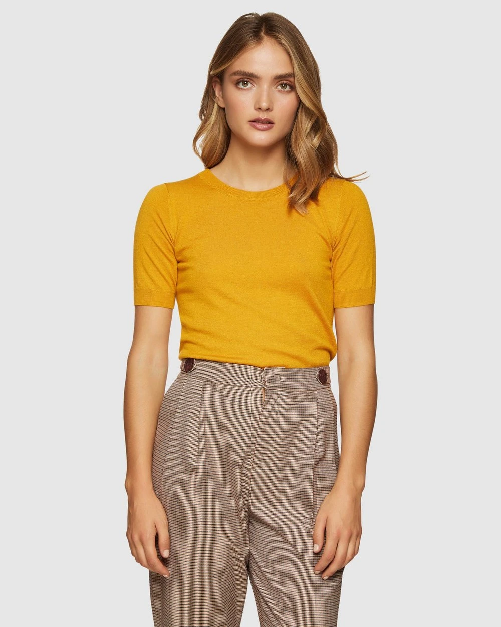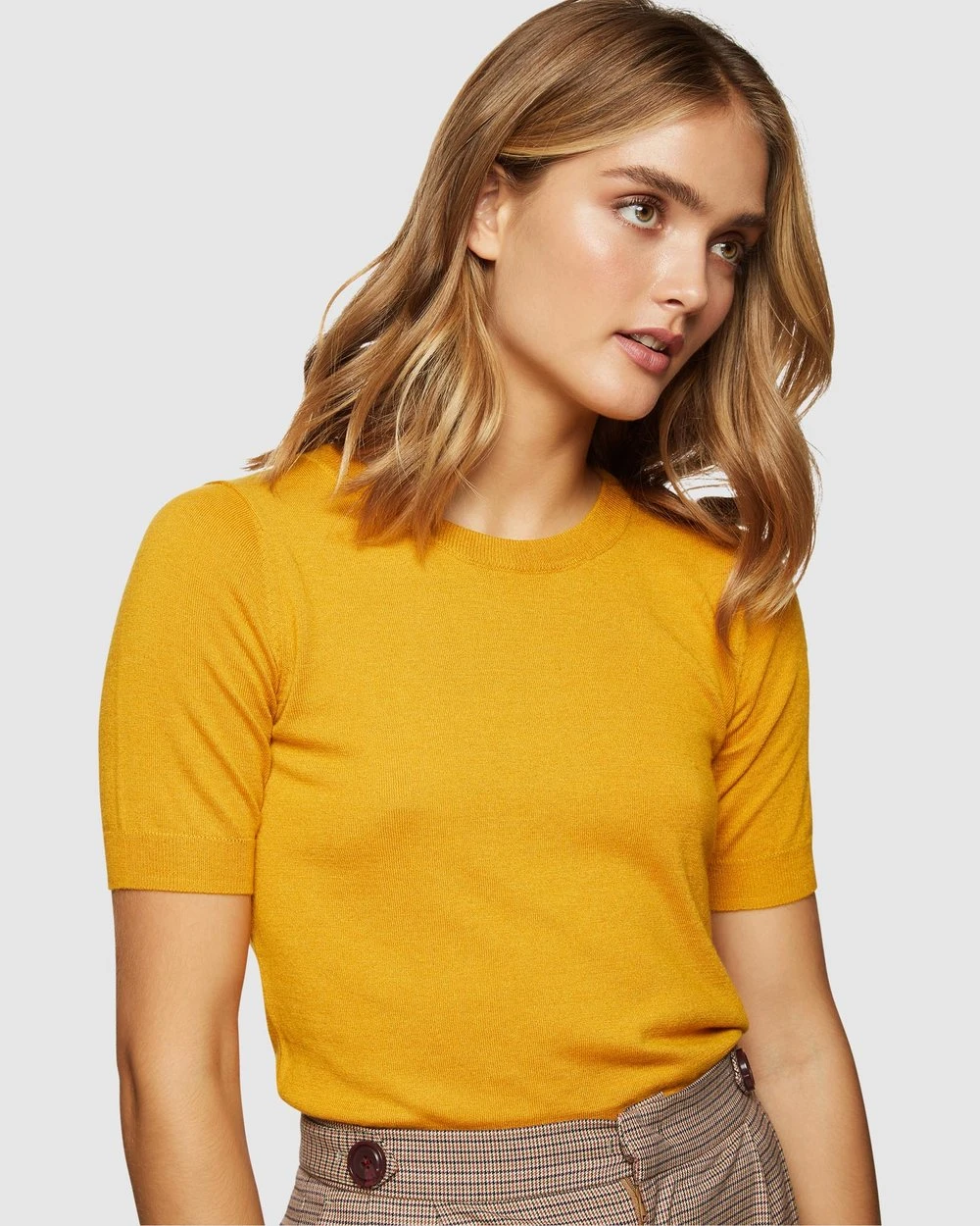 Classic and chic, the Oxford Kaitlin Soft Knit is a must have for every wardrobe. This versatile and light weight knit features a round neckline and short sleeves. The perfect knit to pair back with a pencil skirt or trousers alike.