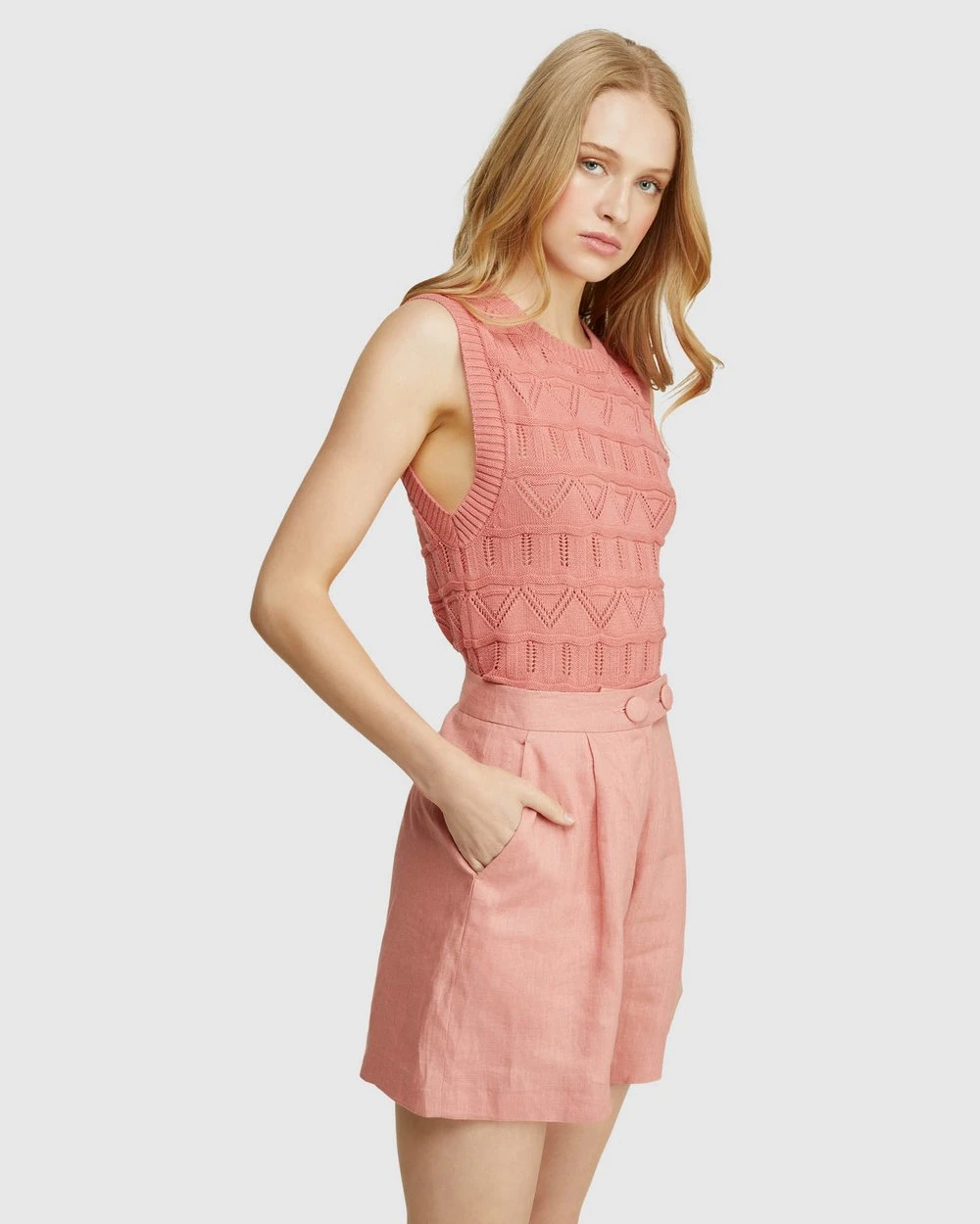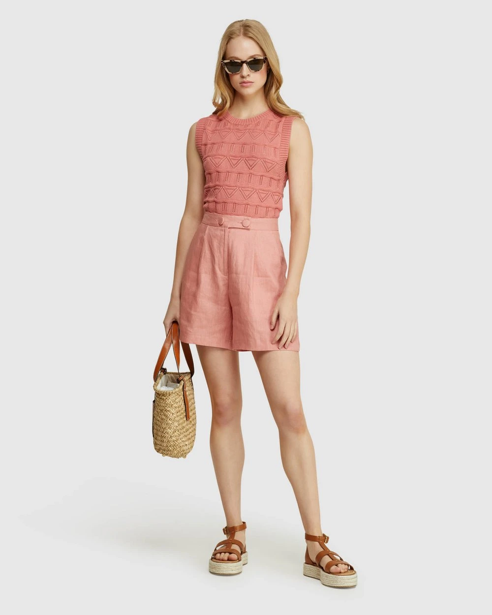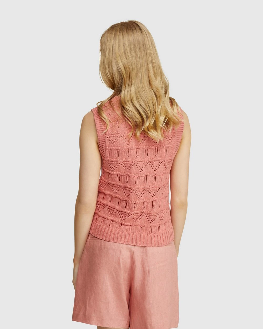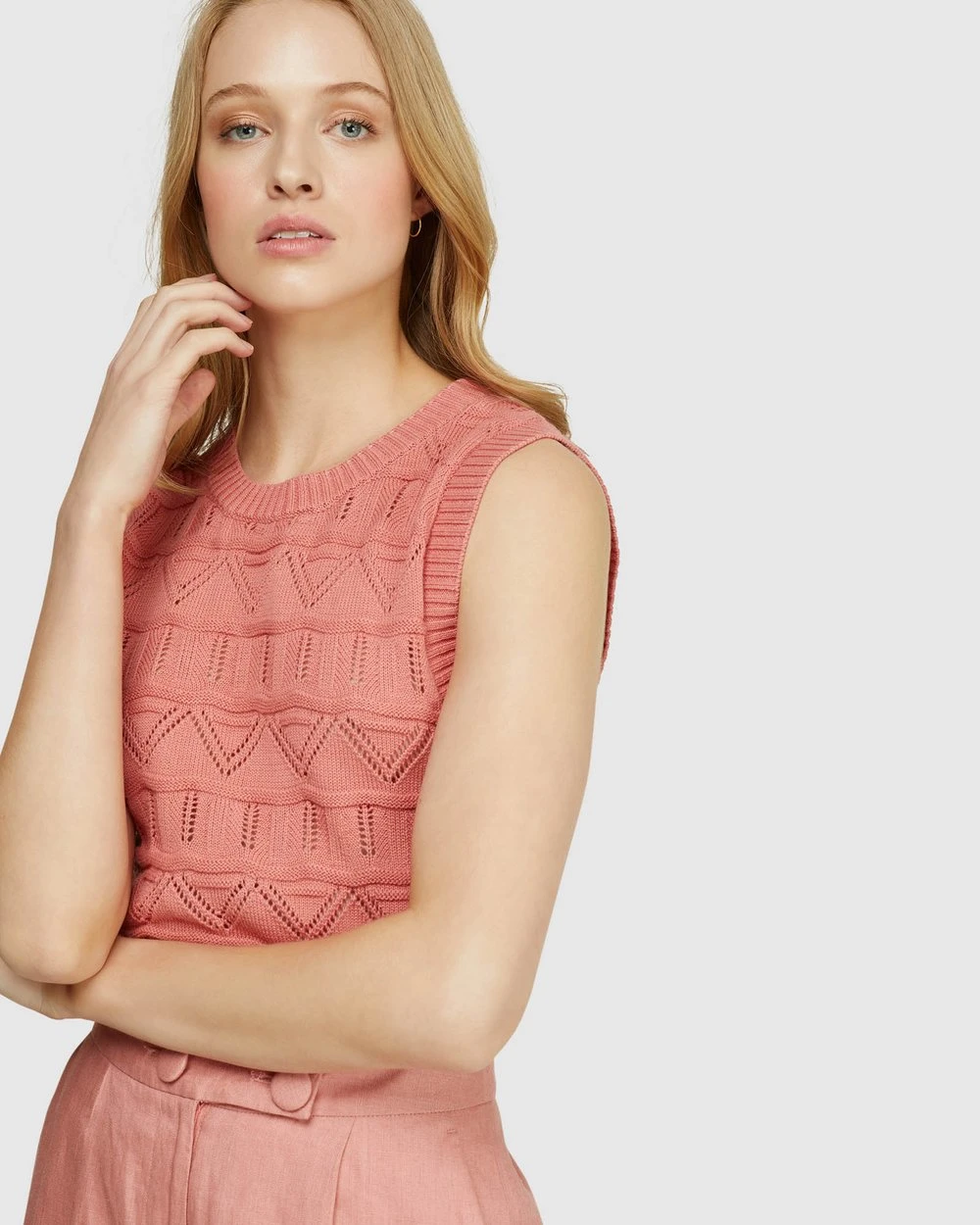 Refine your style with the Katerina Knitted Top by Oxford. This summer knit is crafted from 100% cotton with an intricate woven pattern and features a round neckline and ribbed trims.