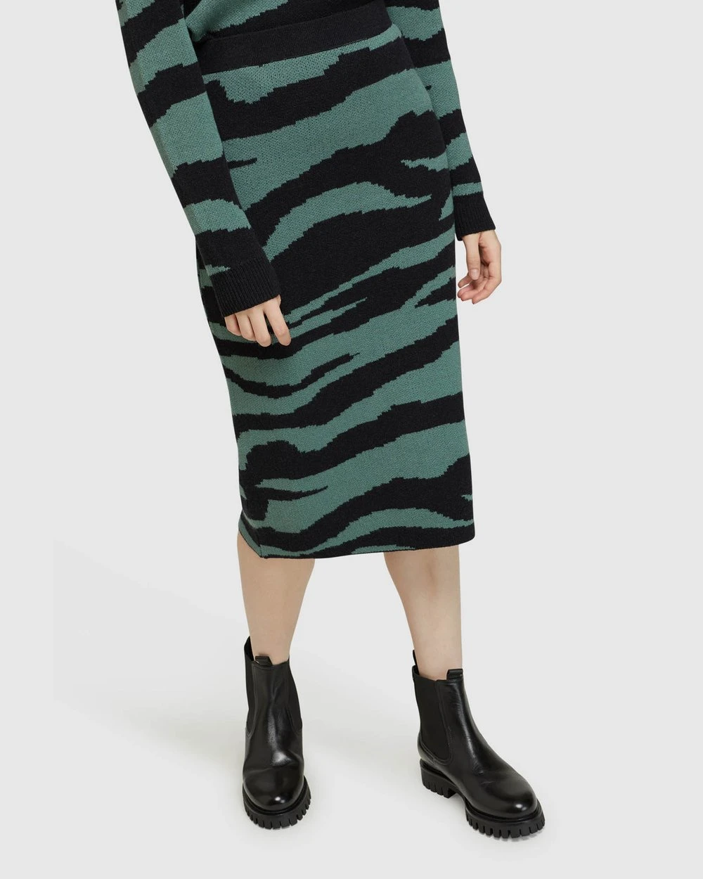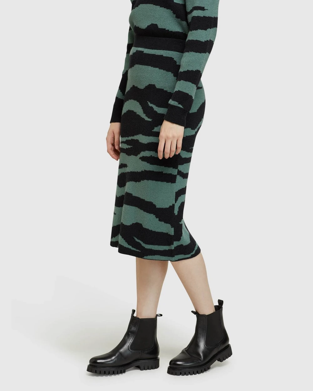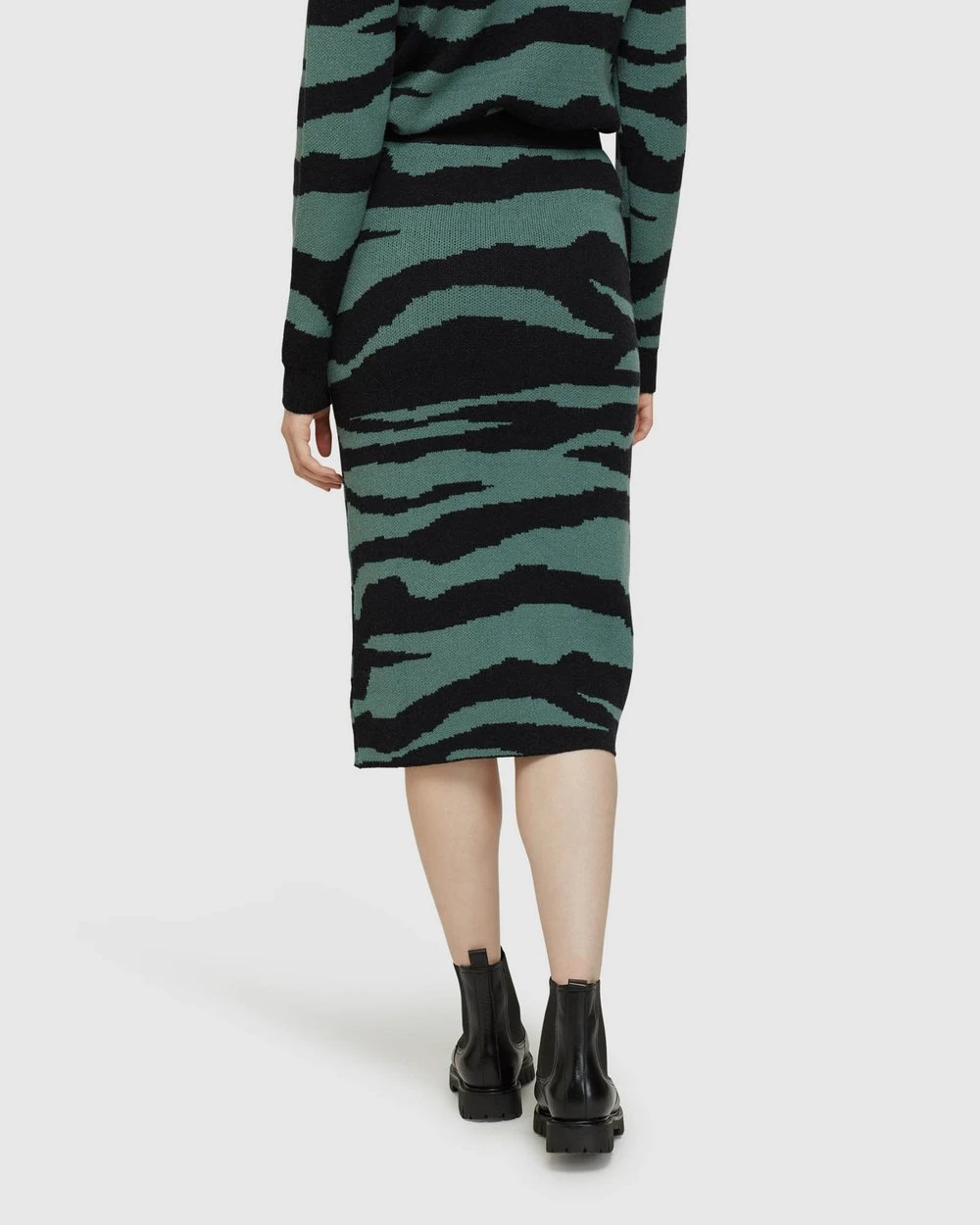Let your wild side out in the Katie Knitted Animal Print Skirt by Oxford. This distinctive style has an animal print in a monochrome colourway and is crafted from a super comfy knitted weave with plenty of stretch.