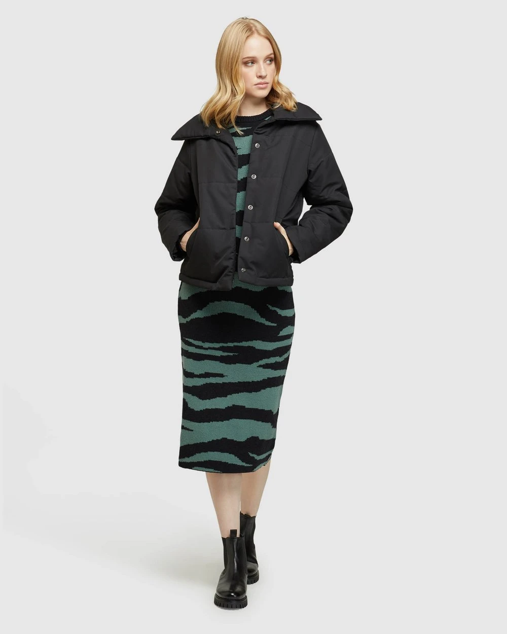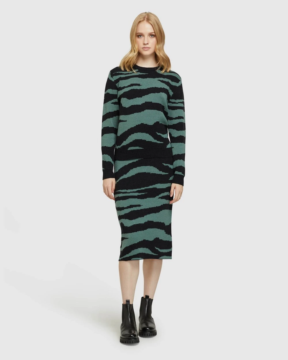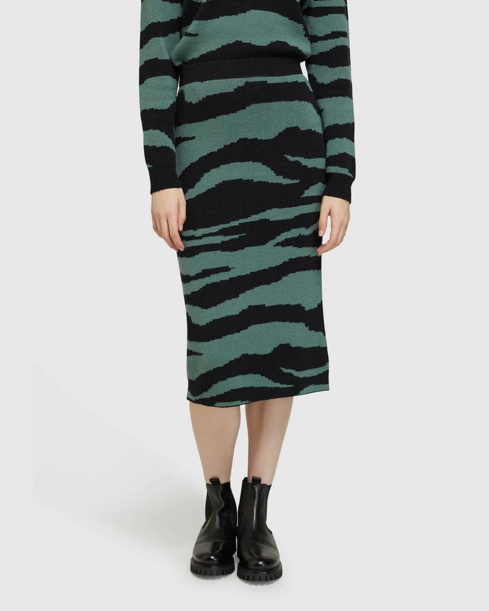 Let your wild side out in the Katie Knitted Animal Print Skirt by Oxford. This distinctive style has an animal print in a monochrome colourway and is crafted from a super comfy knitted weave with plenty of stretch.