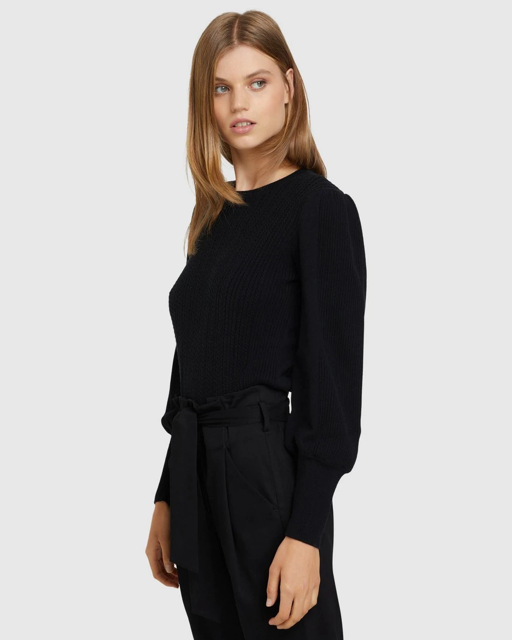 The Kirsten Cable Knit by Oxford is a gorgeous winter style for work or play. This slim fit women’s knit is crafted from a cotton blend and features a cable knit pattern, elegant ballooned sleeves and large ribbed cuffs.