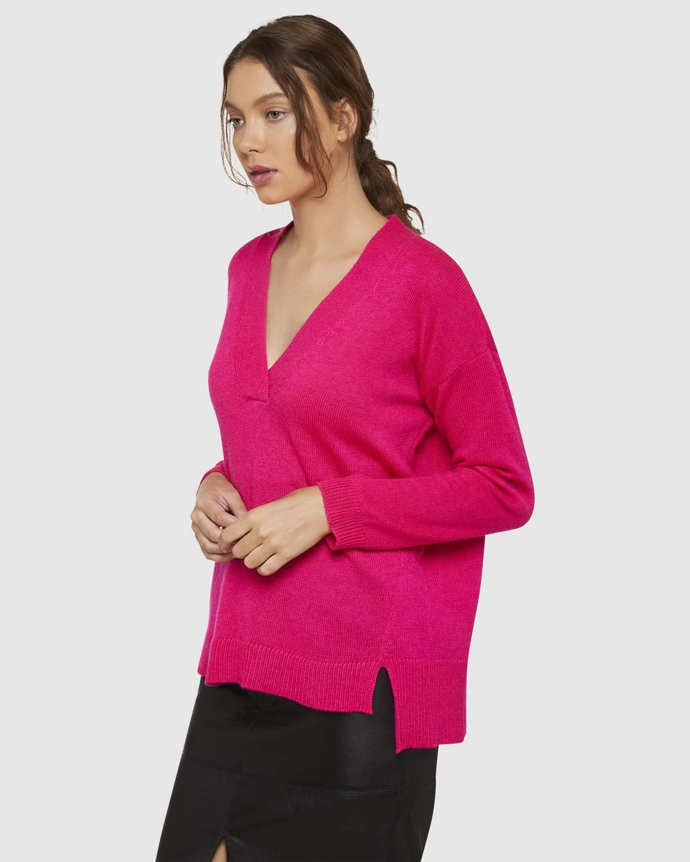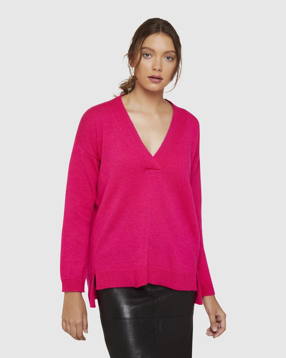 Stylish and cosy, The Oxford Kitty Knit can easily be worn from work to weekend. This relaxed fit style features step hem detail and a v neckline. Wear yours on trans-seasonal days over anything from tailored trousers to denim.
