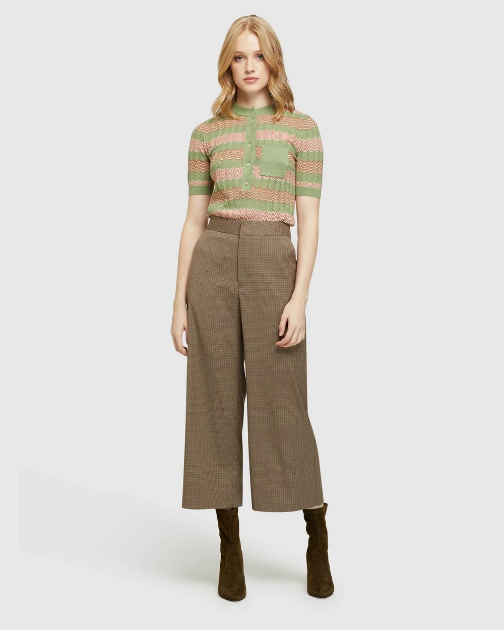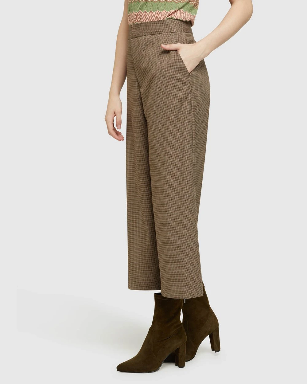 A classic style with a modern touch, the Lacie Check Culottes by Oxford are a versatile choice for work or play. These high waisted pants are cut with a sleek wide leg and are crafted from gorgeous Carreman France Fabric with a brown checked pattern.