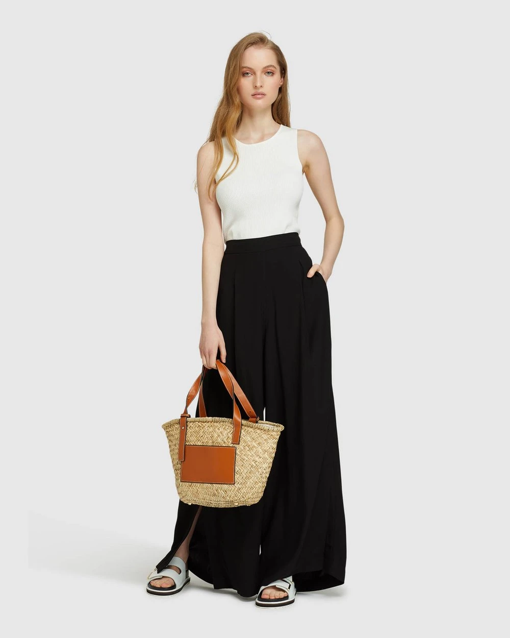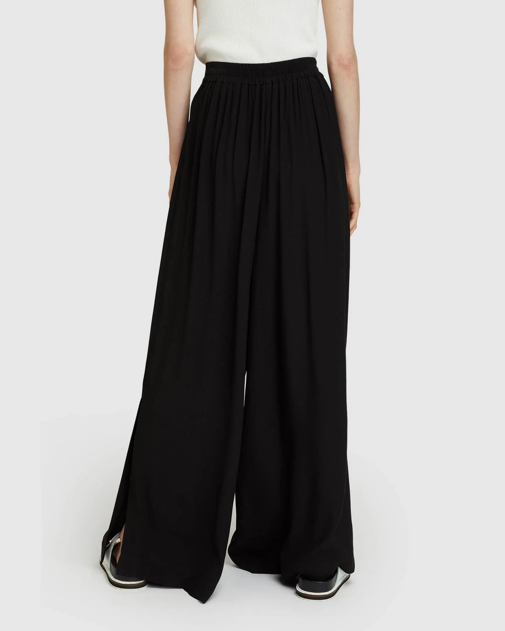 Inside leg: 70.5cm, Front rise: 39.5cm, Opening leg: 38.5cm (size 8). Our model is wearing a size AU 8 pants and usually takes a size 8. She is 175 cm (5’9″) tall with an 81cm (32″) bust, a 61 cm (24″) waist, and 89cm (35″) hips.