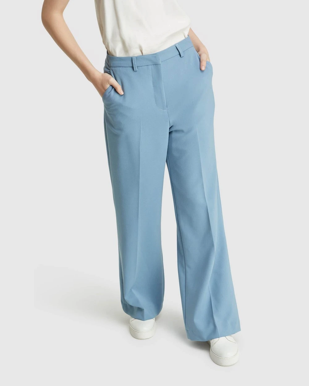 Update your working wardrobe with the Lauren Suit Trousers by Oxford. These versatile and easy to wear trousers with a gorgeous baby blue colourway are designed to sit mid-waist and have an elegant wide leg.