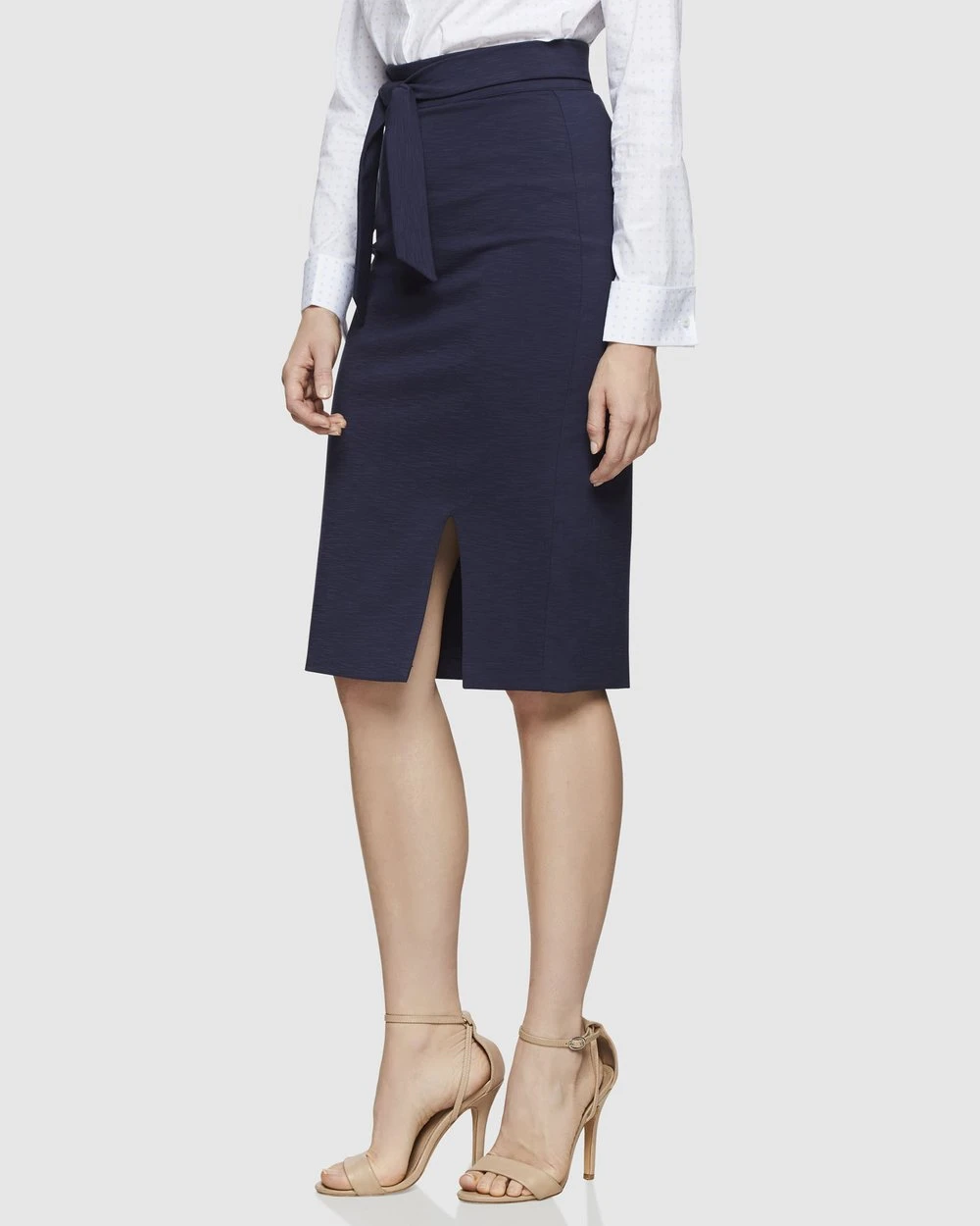 Sophisticated and chic, the Oxford Layla Ponti Skirt will take you from work to after-hours. Constructed from ponti fabrication in a gorgeous wintery petrol hue, this super flattering skirt is a pencil style with belted waist and front split. For a super chic look at the office, simply style it with heels.