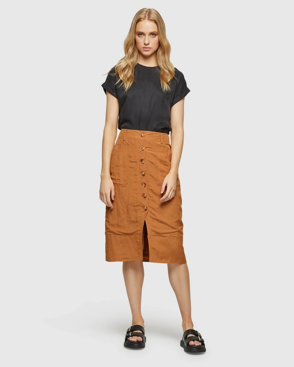 Length: 60cm (Size 8). Our model is wearing a size 8 top and usually takes a size 8. She is 178cm (5’84”) tall with an 81cm (32”) bust, a 63cm (25”) waist, and 86cm (34”) hips.