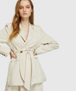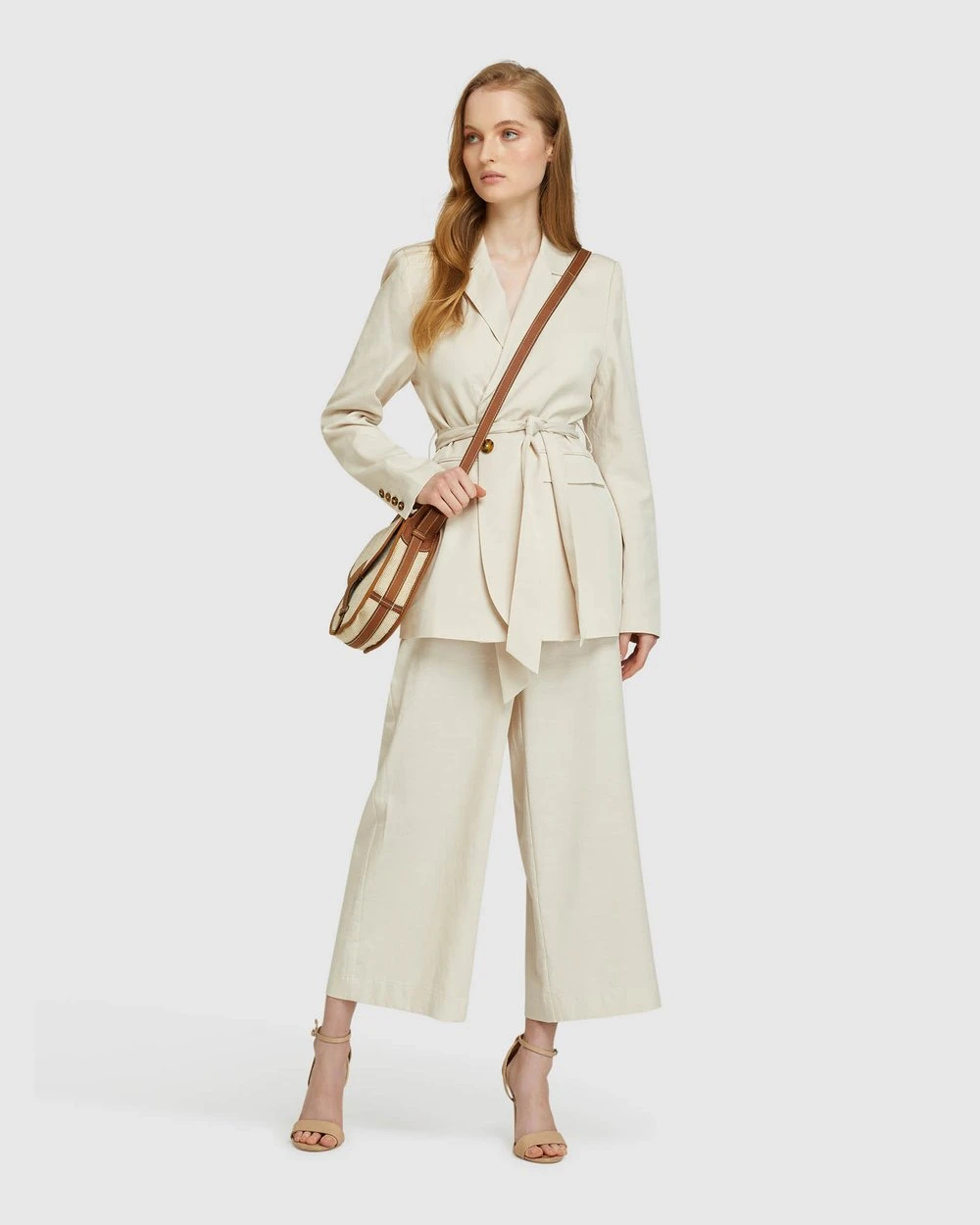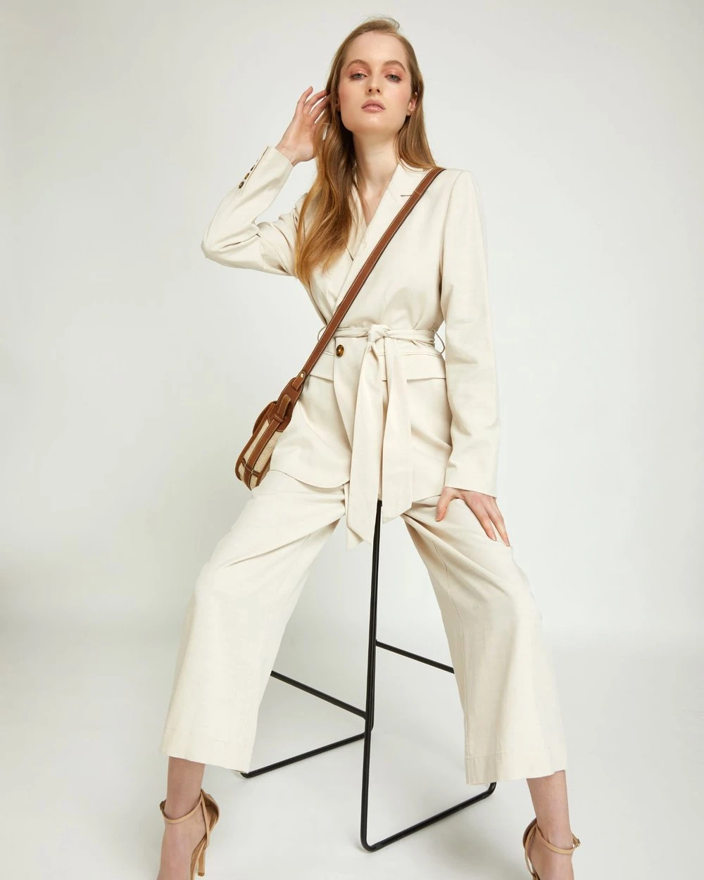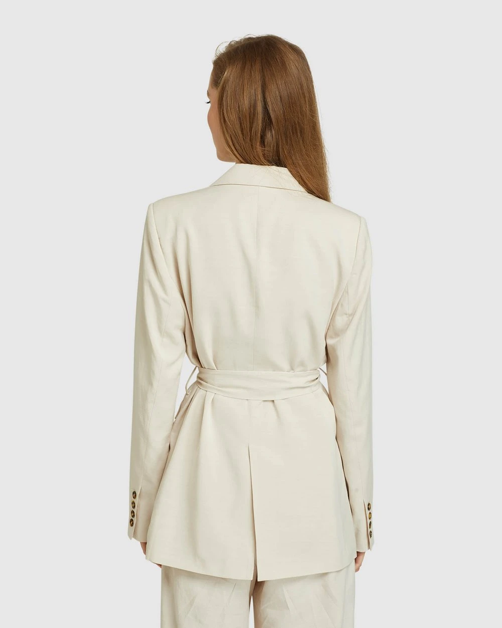 The Lola Detachable Belt Blazer by Oxford is a timeless feminine style for work or play. This jacket is crafted from a lightweight tencel and cotton blend, and cut in an oversized fit. It features a detachable belt so you can style it as you please.