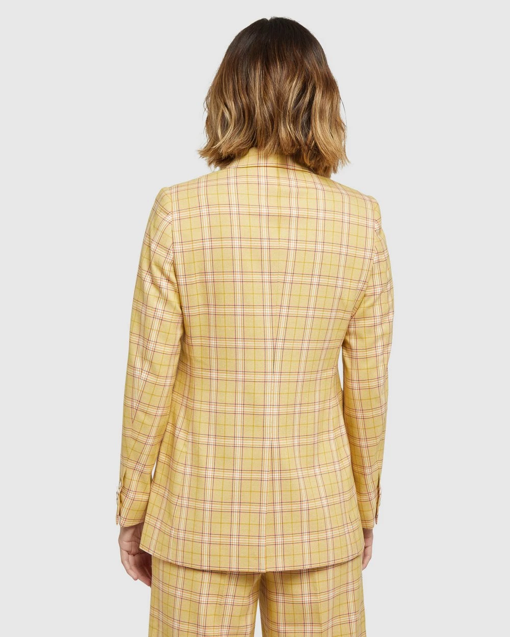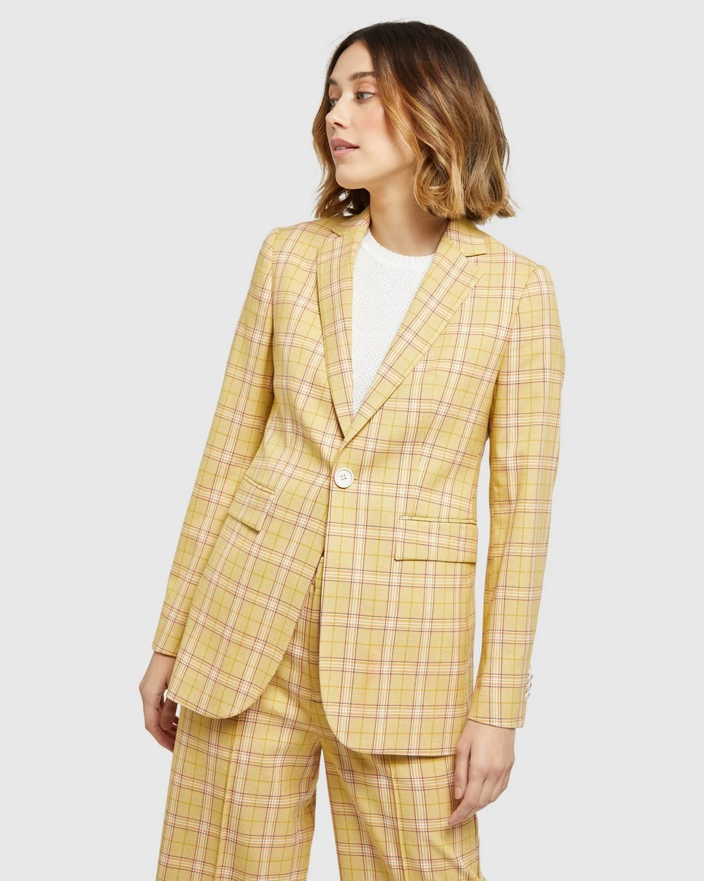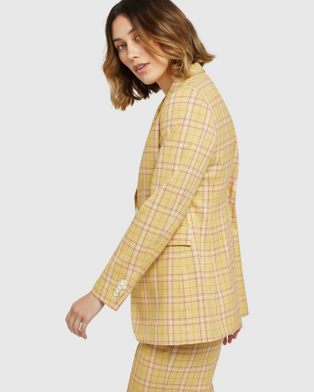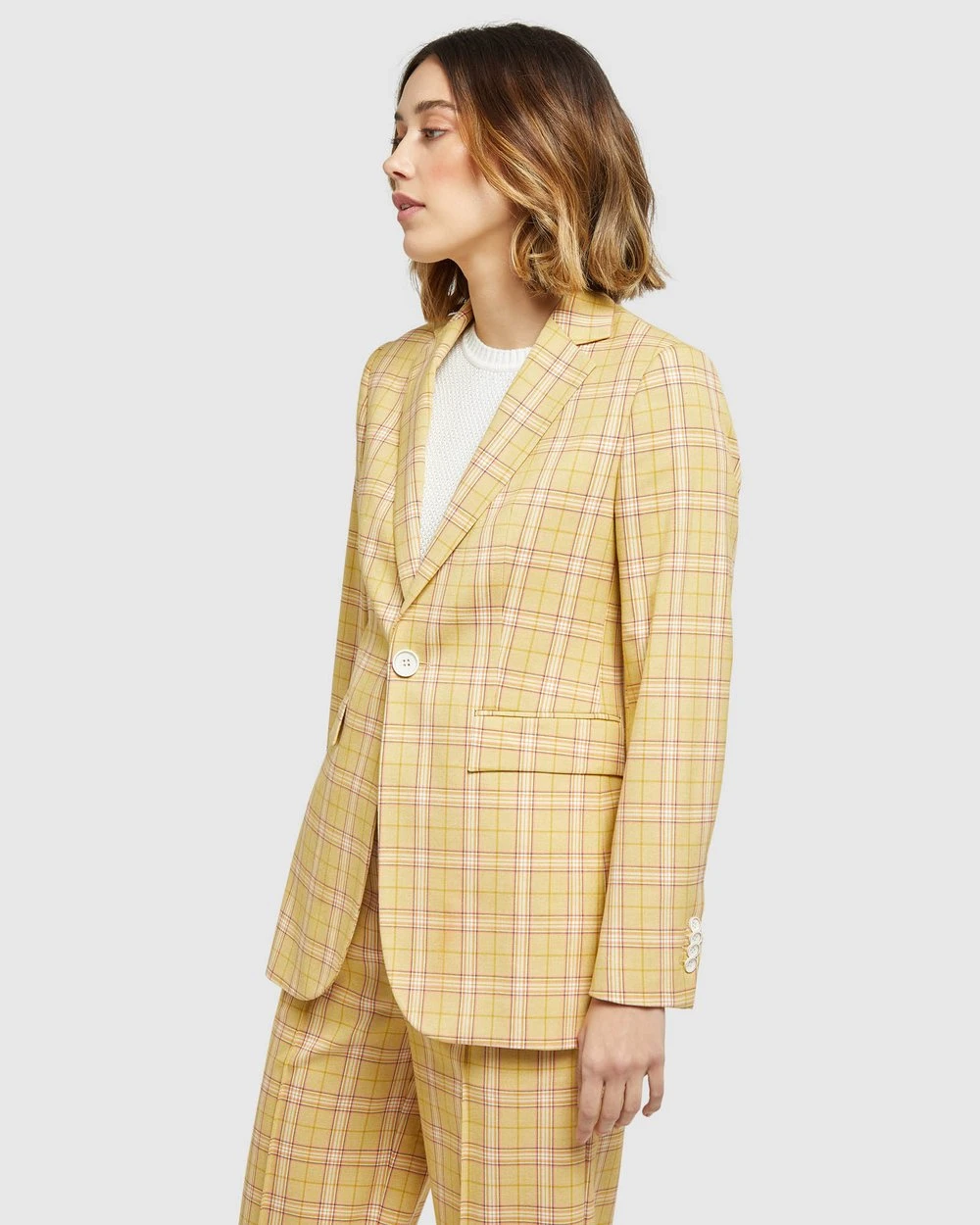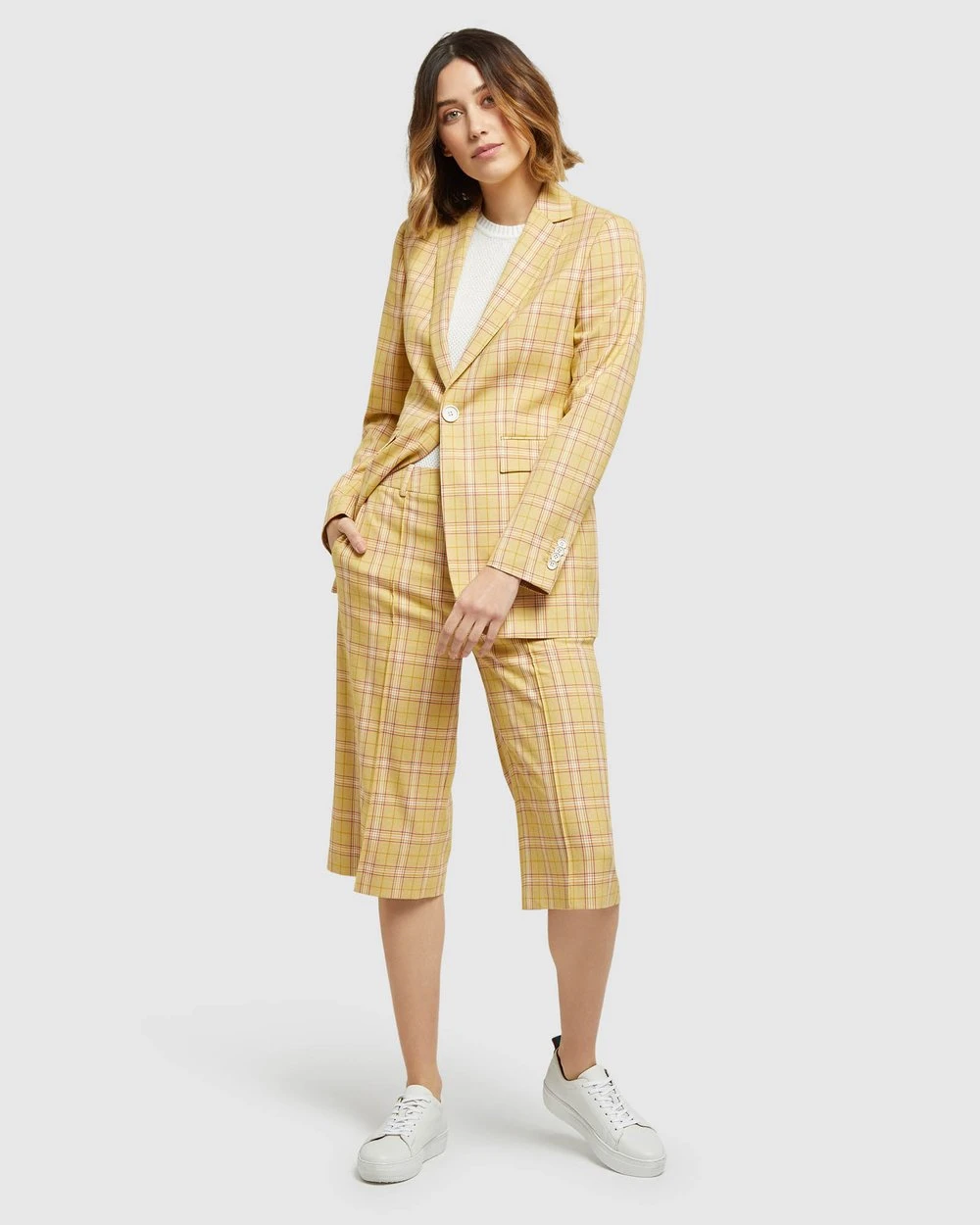 Add some pizzazz to your wardrobe with the Oxford Lola Eco Check Blazer, an on-trend style for work or play. Constructed from a light and breezy fabric, this blazer is designed to be a loose fit and features a bold check pattern and bright colourway. For a modern and stylish look wear it with the matching Oxford Lottie Check Eco Culottes and sneakers.