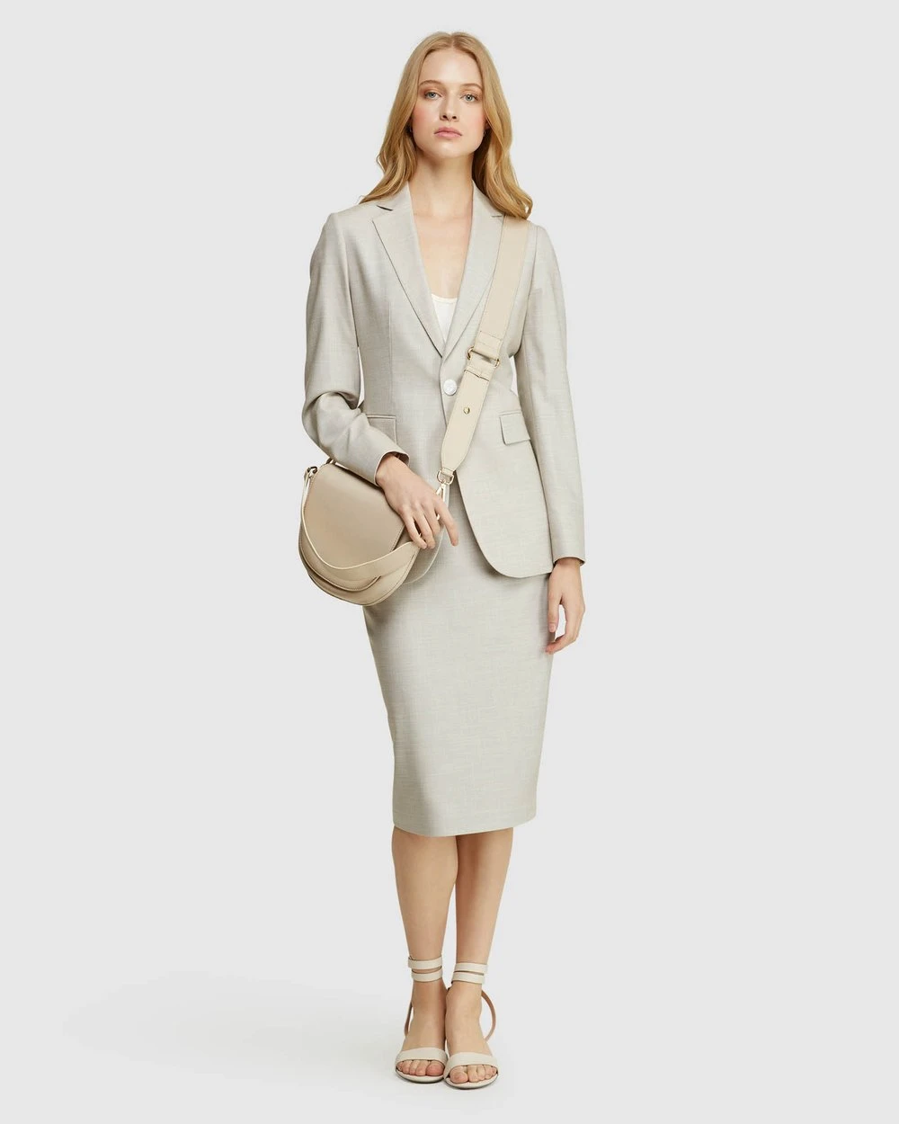 Length: 69cm (Size 8). Our model is wearing a size AU 8 blazer and usually takes a size 8. She is 178cm (5’84”) tall with an 81cm (32”) bust, a 63cm (25”) waist, and 86cm (34”) hips.