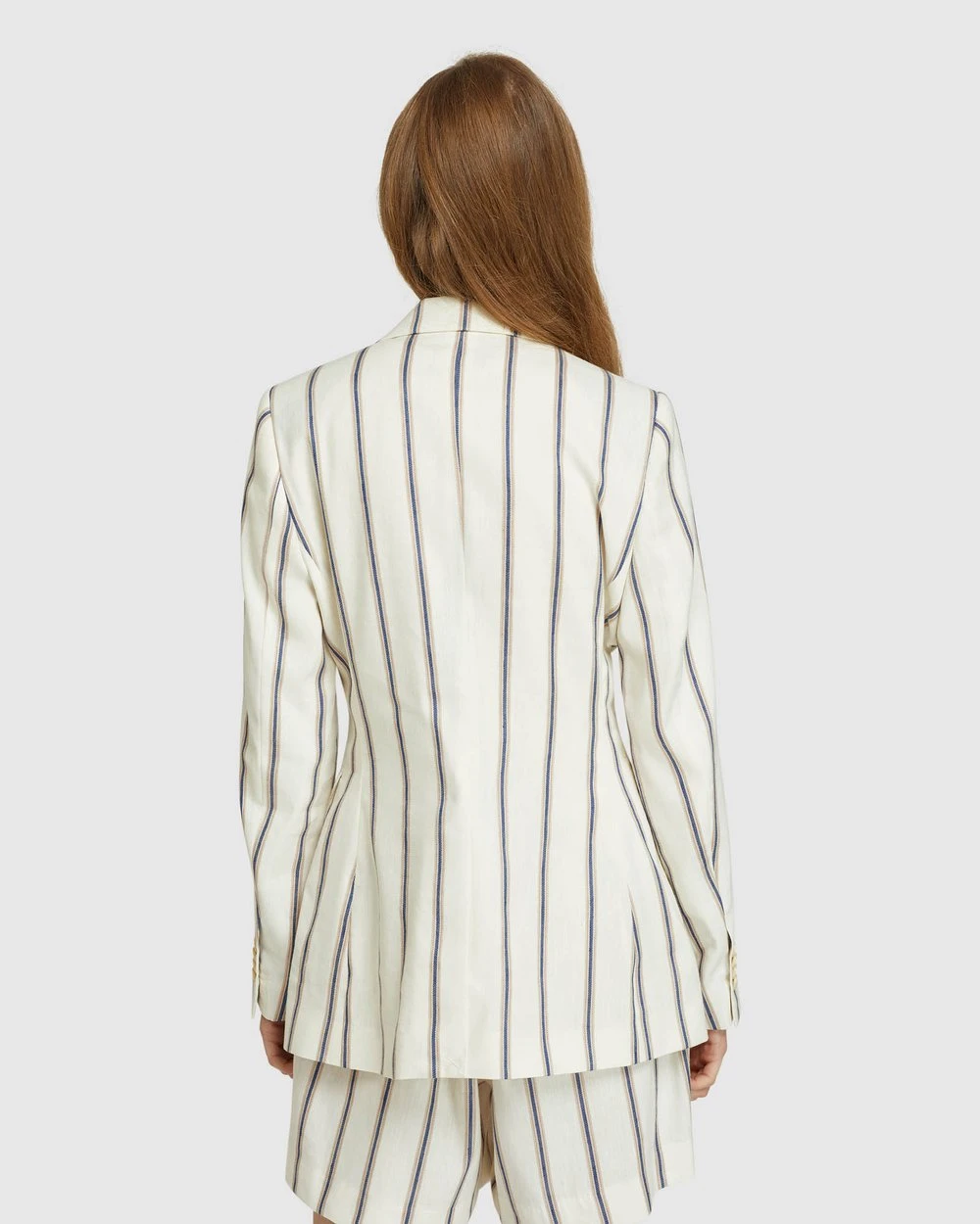 Length: 69cm (Size 8). Our model is wearing a size AU 8 blazer and usually takes a size 8. She is 175cm (5’9″) tall with an 81cm (32″) bust, a 61cm (24″) waist, and 89cm (35″) hips.