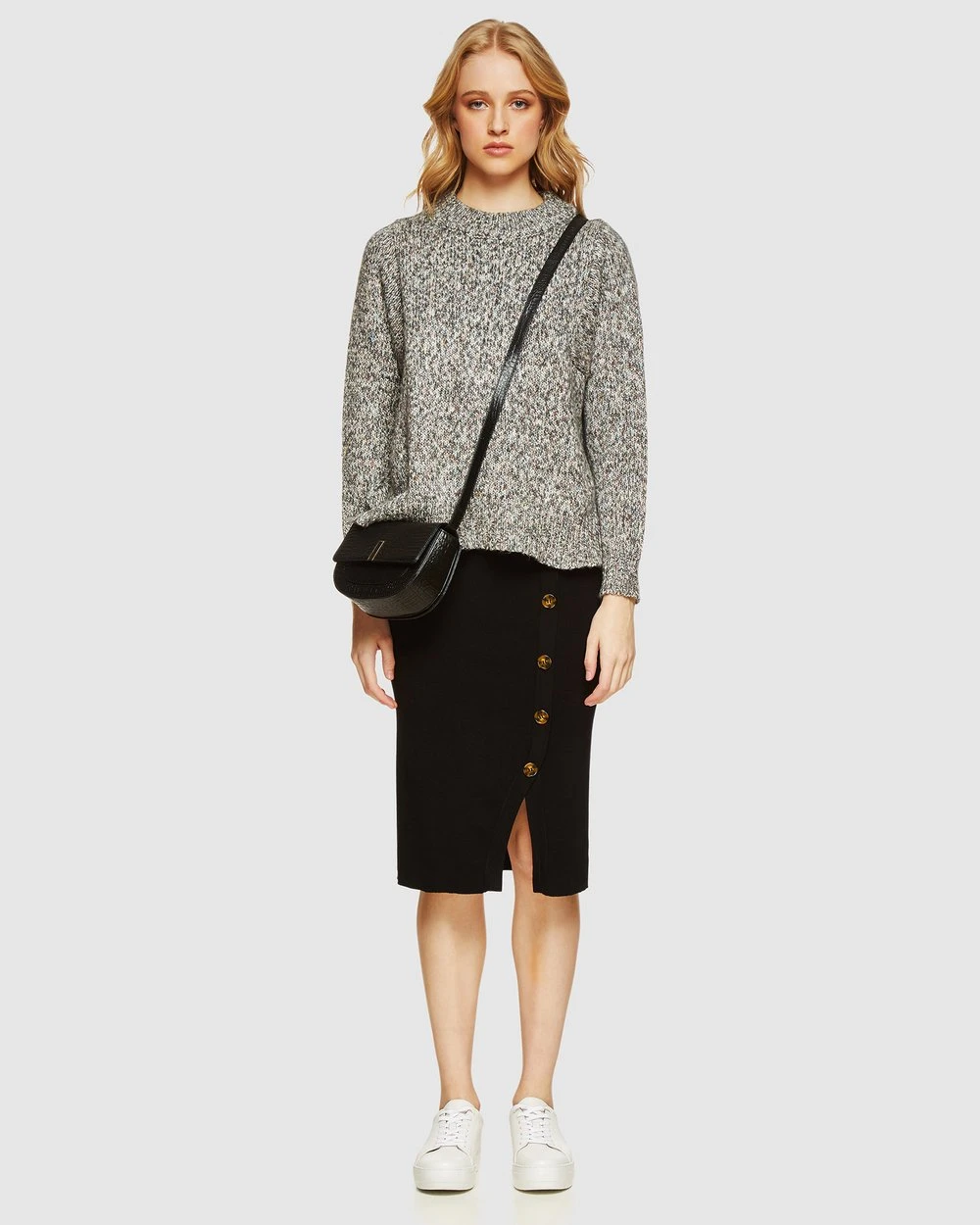 The Oxford Lucia Multi Colour Knit is a sleek, feminine style that will elevate your winter wardrobe. This quaint and cosy knit is spun from a distinctive multi-coloured yarn and features a wide neckline with ribbed trims and long side splits. Team it with some smart checked pants, crisp white sneakers and brown leather accessories for a stylish and versatile look.