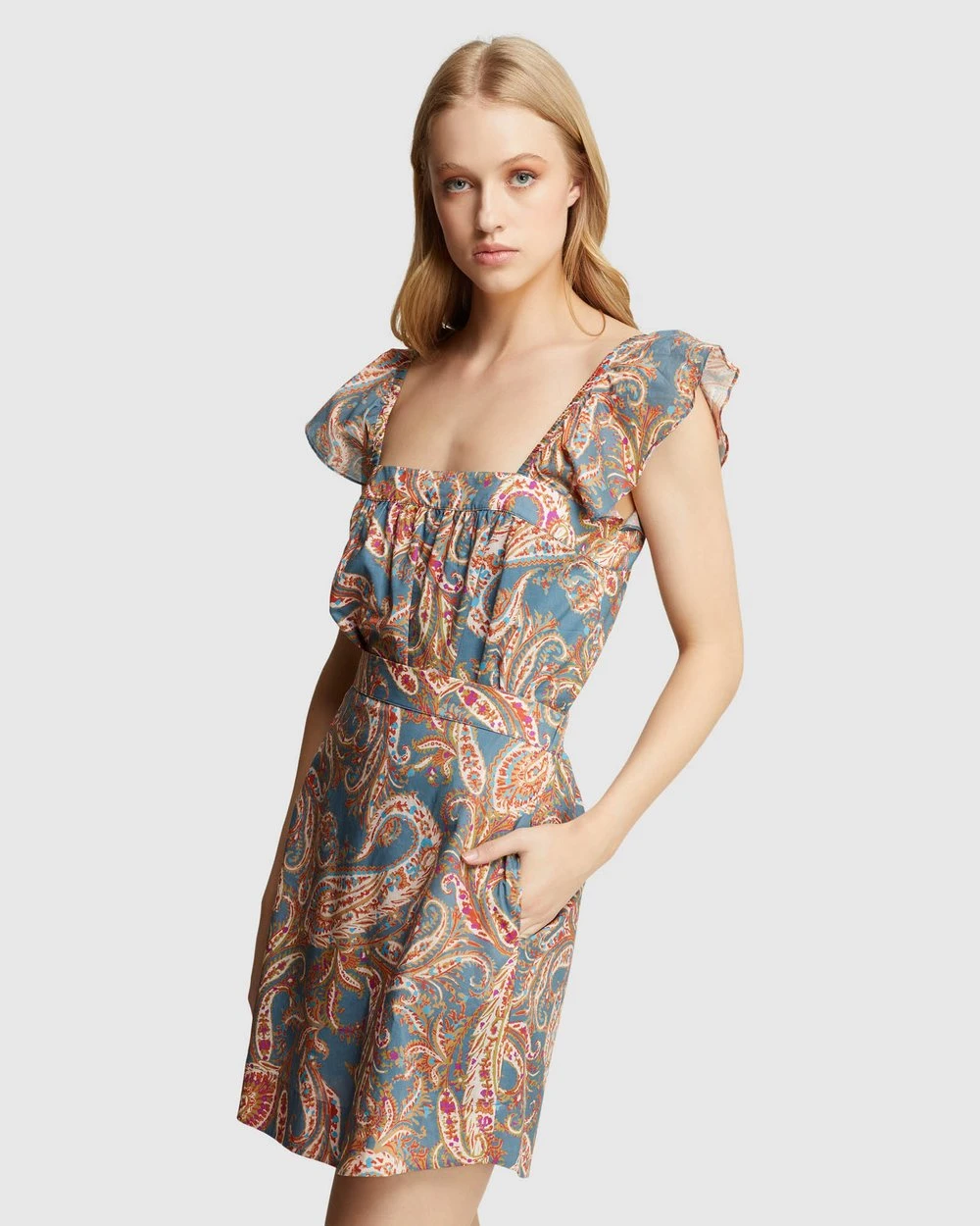 Go boho this summer in the gorgeous Lucielle Cotton Paisley Print Top by Oxford. This gorgeous style is crafted from 100% cotton with a classic paisley print. It features fabulous frilly shoulders and a deep square front and back.