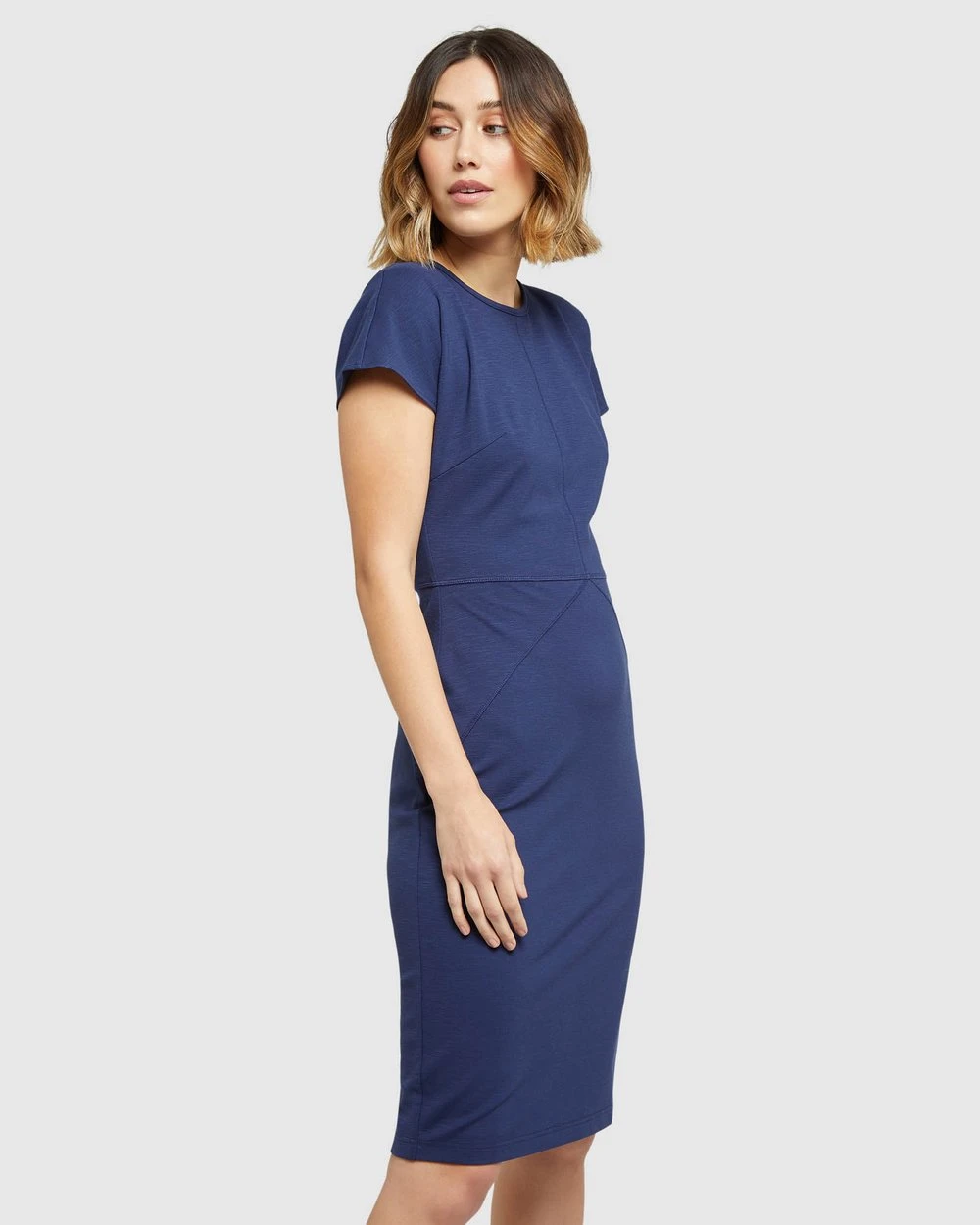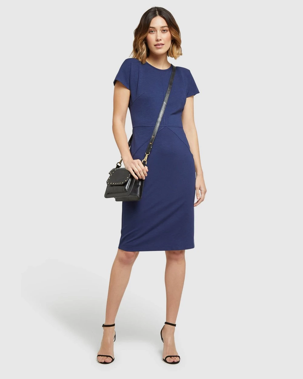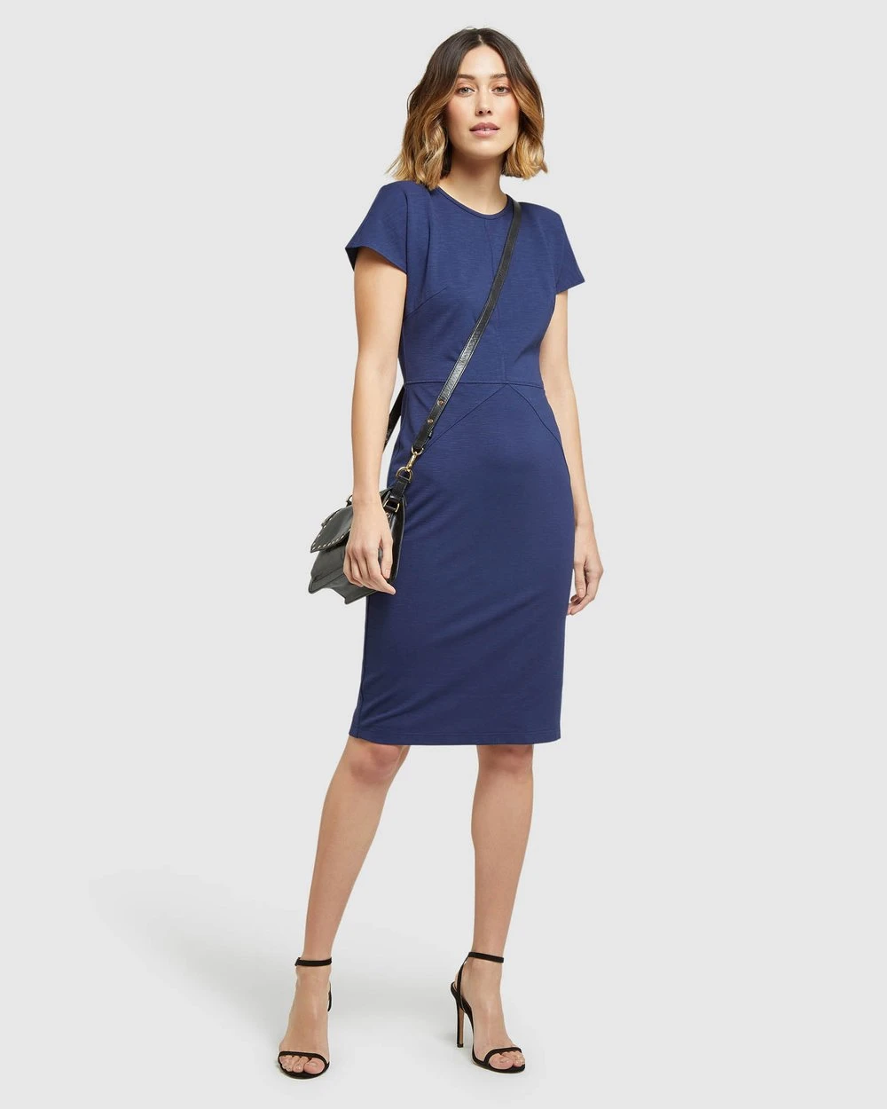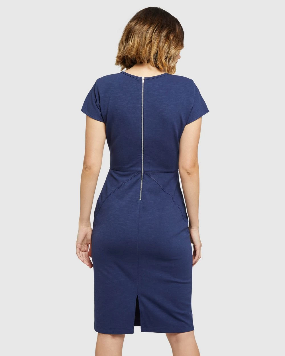 Go from desk to dinner in the Oxford Magnolia Ponti Zip Dress, a comfortable and versatile style. Crafted from a soft ponti fabrication with a hint of stretch, this slim fit dress has a super flattering silhouette and features a round neckline, exposed back zip and a small back split. Just add some heels and leather accessories to complete the look.