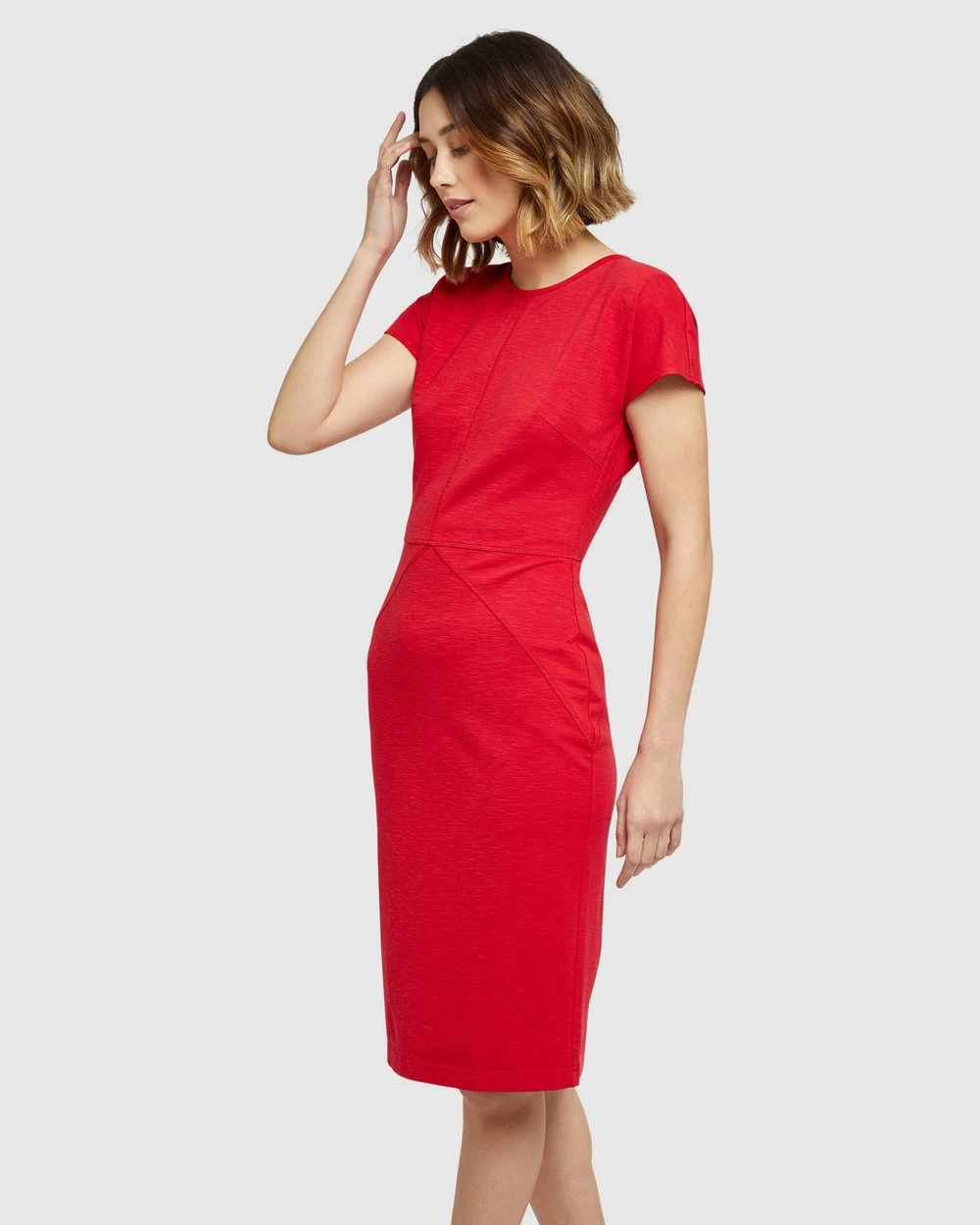 Our model is wearing a size 8 dress, and usually takes a size 8. She is 180 cm (5’8″) tall with an 78cm (31″) bust, a 62 cm (24″) waist and 94cm (37″) hips.