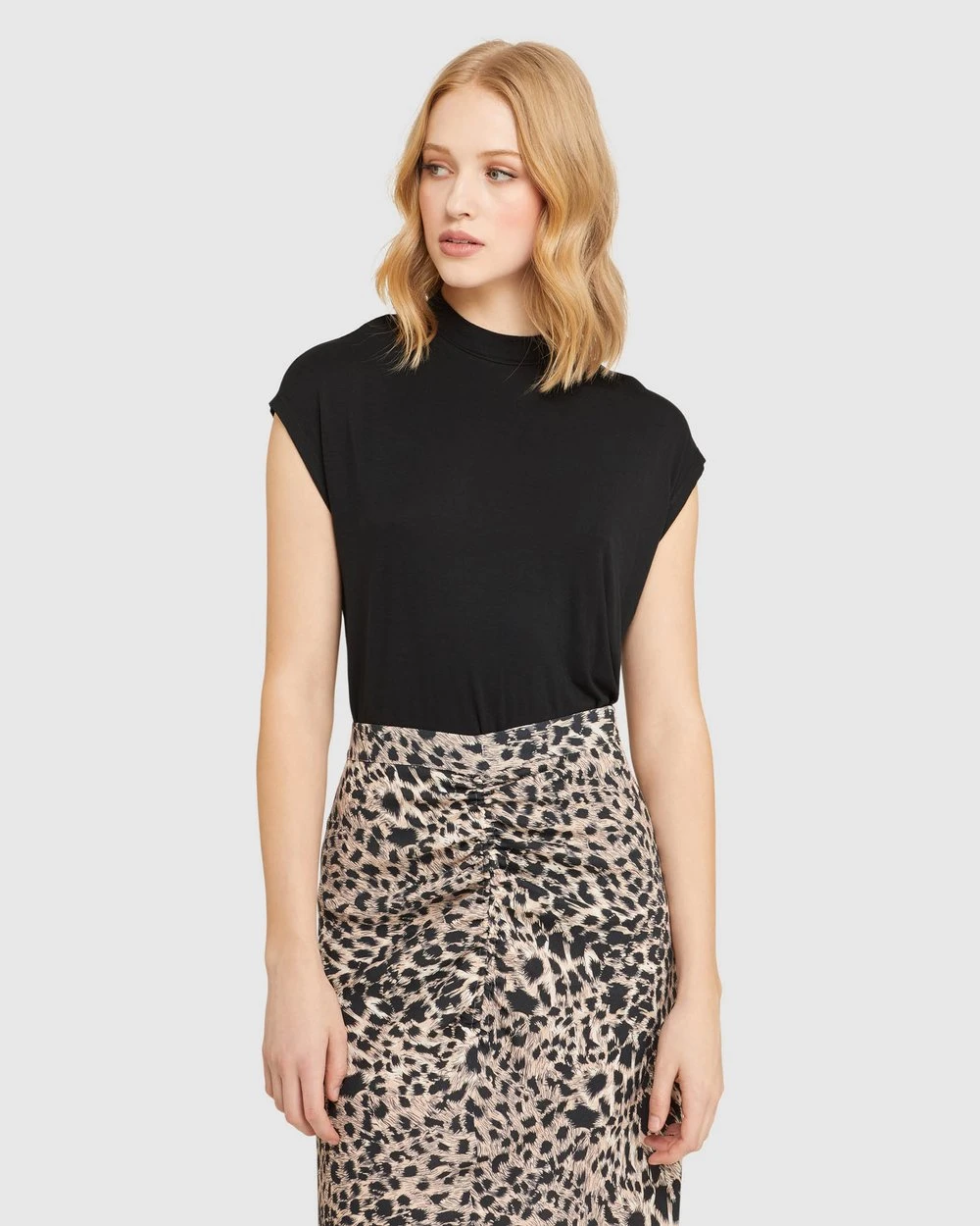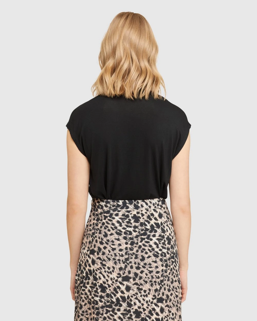 Length: 63.5cm (Size 8). Our model is wearing a size AU 8 top and usually takes a size 8. She is 178cm (5’84”) tall with an 81cm (32″) bust, a 63cm (25″) waist and 86cm (34″) hips.