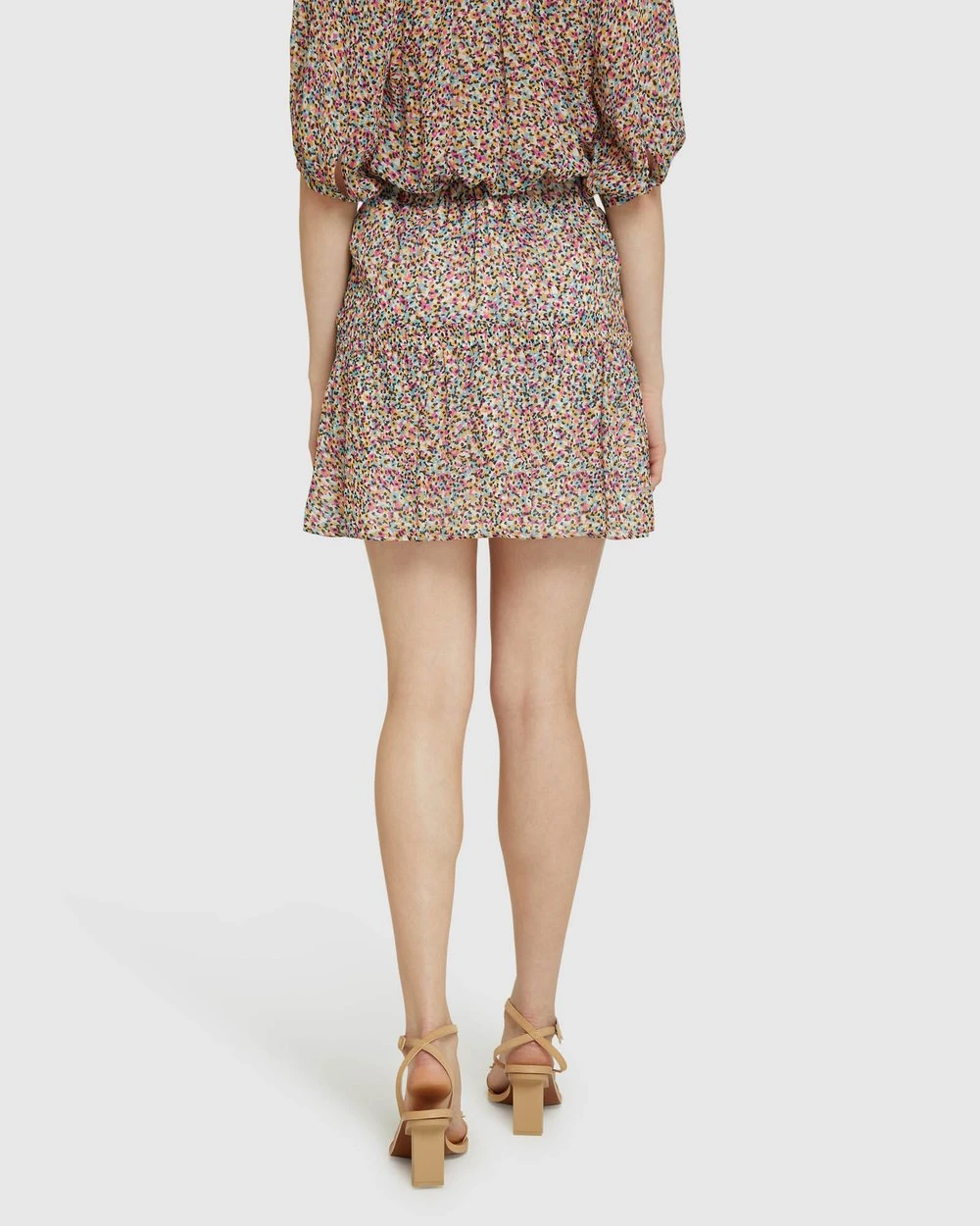 Length: 45.5cm (Size 8). Our model is wearing a size AU 8 skirt and usually takes a size 8. She is 178cm (5’84”) tall with an 81cm (32″) bust, a 63cm (25″) waist and 86cm (34″) hips.