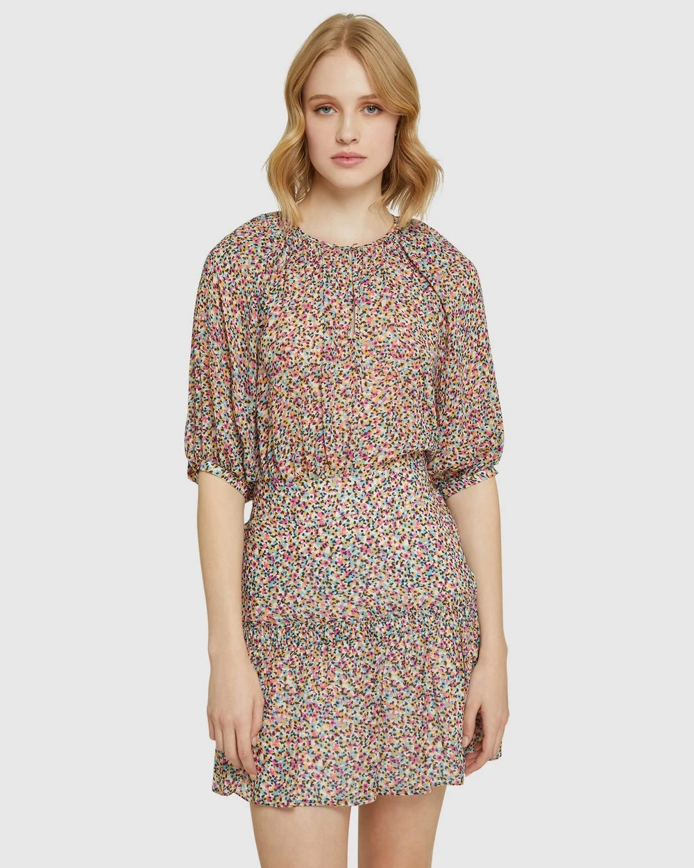 Update your summer party look with the Martina Spot Skirt by Oxford, a light and breezy style with a vibrant spot print, peplum hem and mid-rise elastic waist.