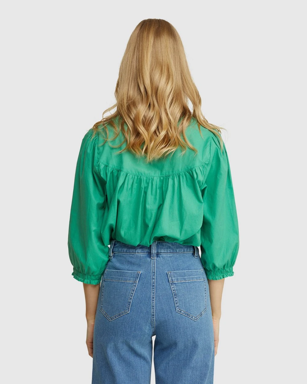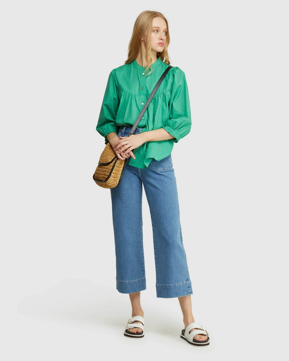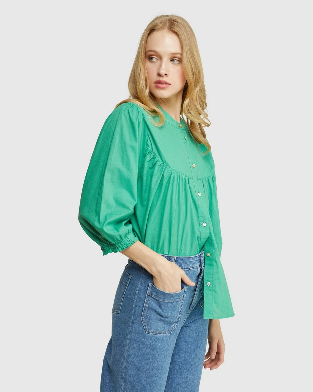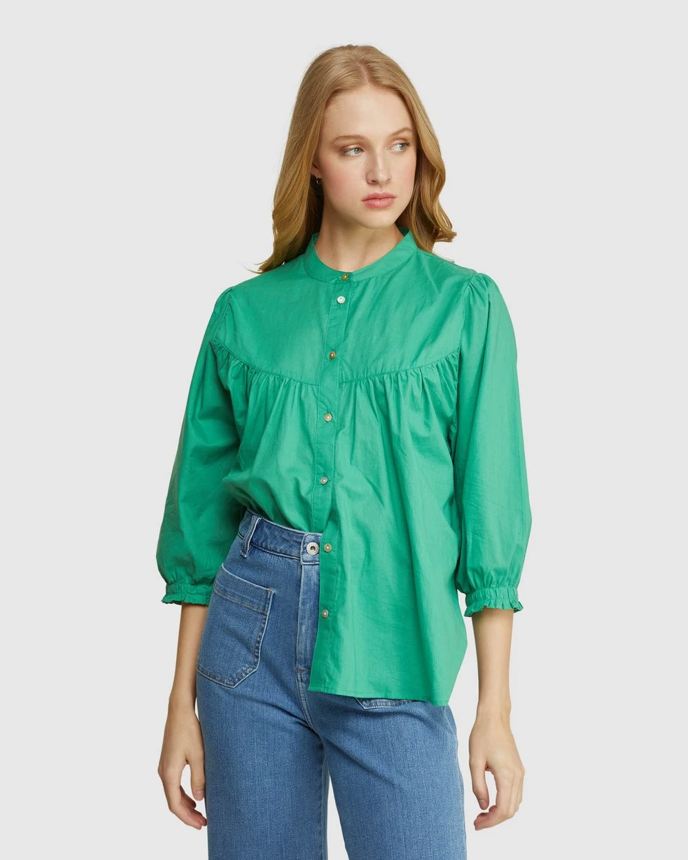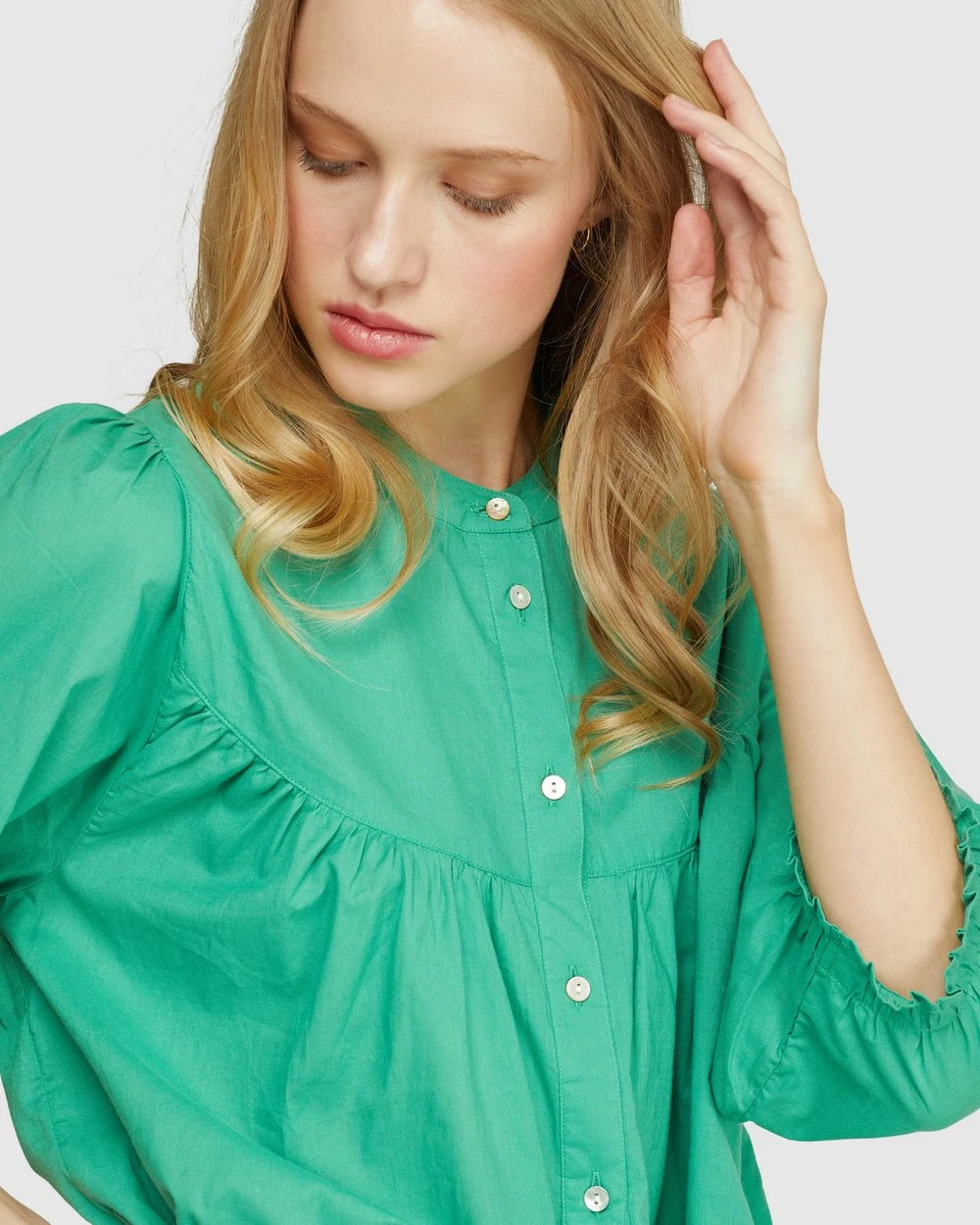 The Megan Cotton Shirt by Oxford is a modern take on a nostalgic style. This elegant prairie shirt is crafted from 100% cotton and cut in a relaxed fit. It features a round neckline, button front and mid-length sleeves with wide frilled cuffs.