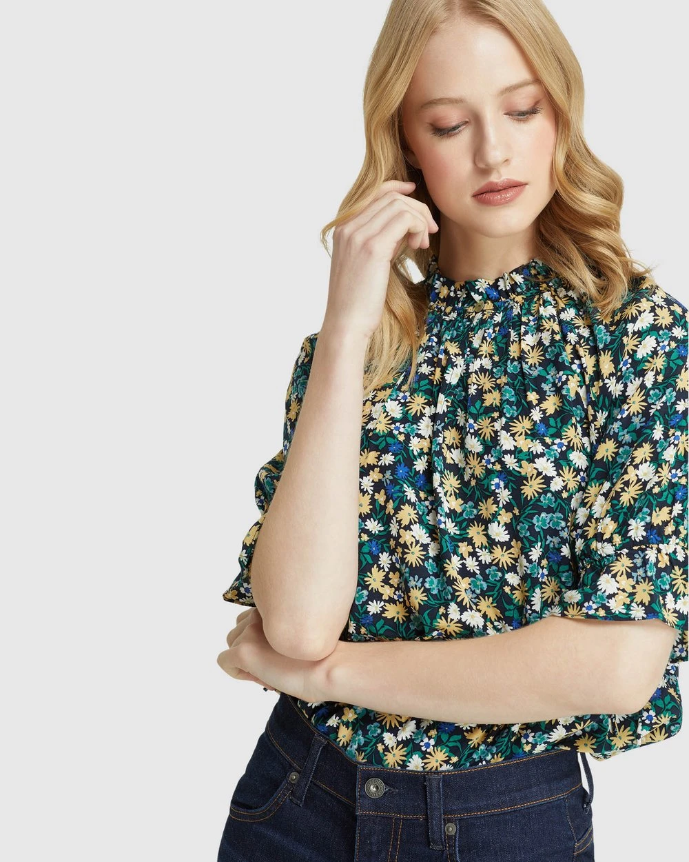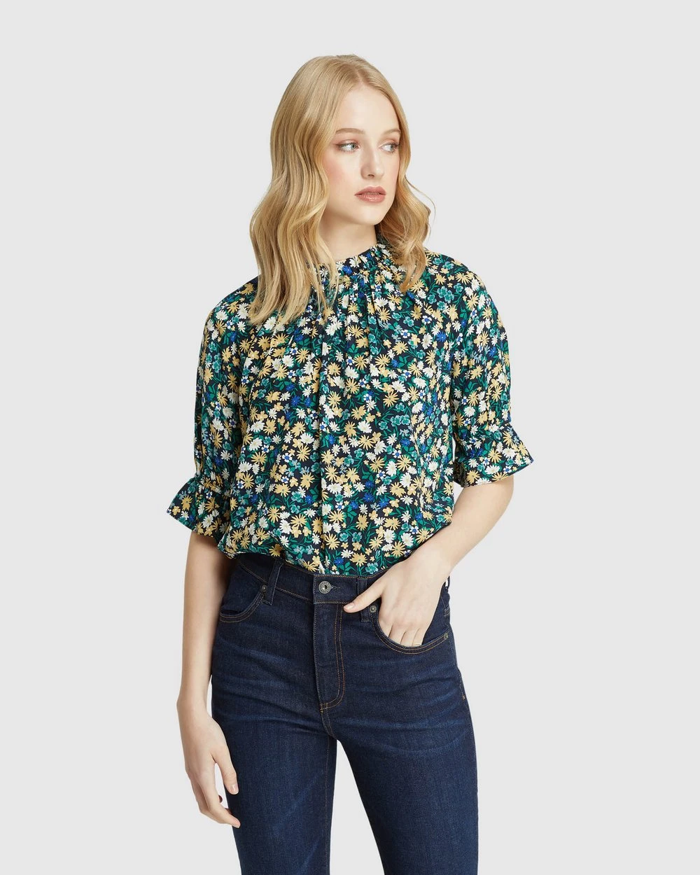 The Parker Ditsy Floral Top by Oxford is an adorable style that will take you from work to the weekend. This women’s top is cut in a relaxed fit and features a vibrant floral print that is exclusive to Oxford, with a high ruffled neckline with a keyhole button closure and flared sleeves with tie detail.
