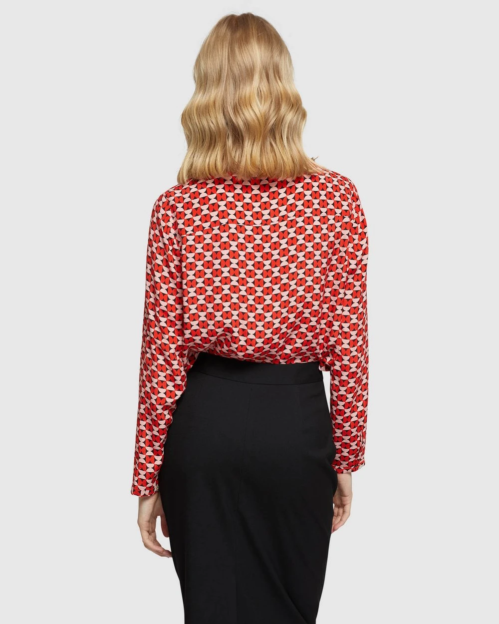 A chic addition to your wardrobe, the Oxford Poppy Butterfly Geo Printed Blouse will take you from desk to dinner. This shirt is a relaxed fitting style with a small collar and geometric print. For a statement look at work, style this blouse back with a sleek pencil skirt and heels.