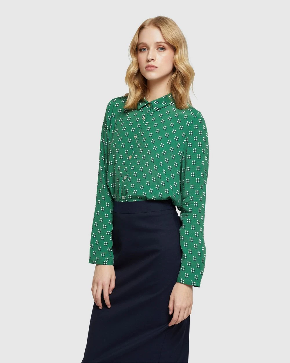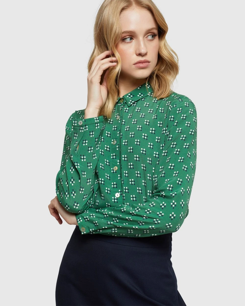 A chic addition to your wardrobe, the Oxford Poppy Geo Spot Printed Blouse will take you from desk to dinner. This shirt is a relaxed fitting style with a small collar and geometric print that is exclusive to Oxford. For a statement look at work, style this blouse back with a sleek pencil skirt and heels.
