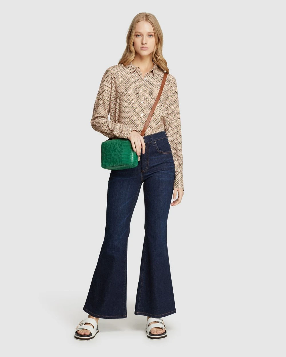 Length: 62cm (Size 8). Our model is wearing a size AU 8 blouse and usually takes a size 8. She is 178cm (5’84”) tall with an 81cm (32″) bust, a 63cm (25″) waist, and 86cm (34″) hips.