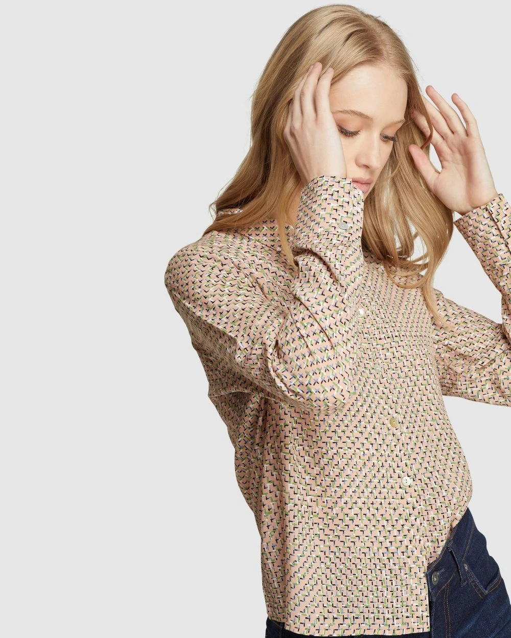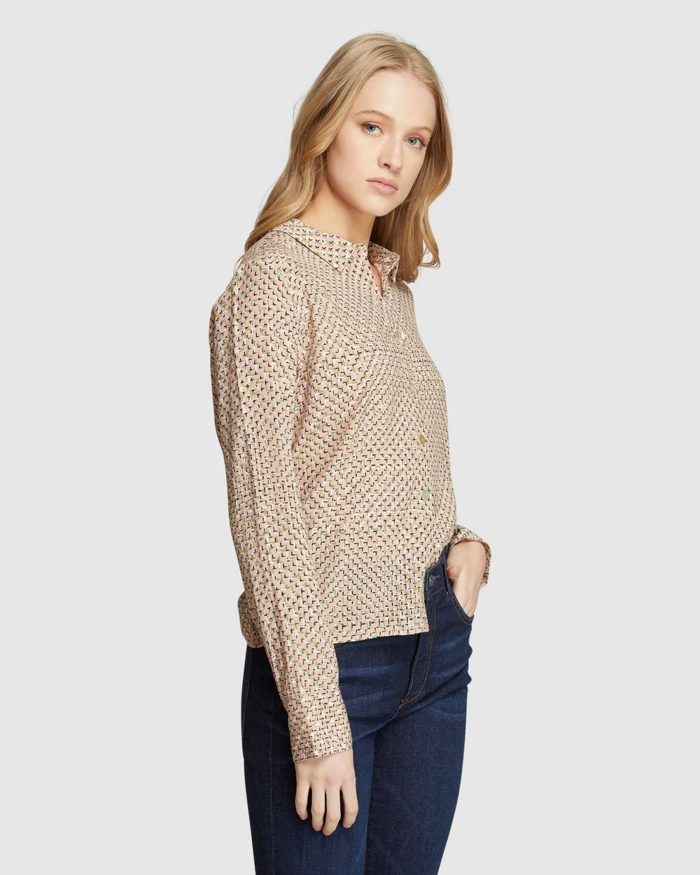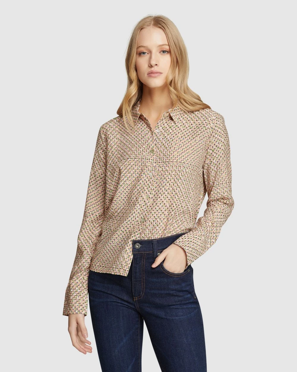 For a modern look with a vintage feel add the Poppy Printed Blouse by Oxford to your collection. This elegant blouse is cut in a relaxed fit and features a striking geometric print that is exclusive to Oxford.