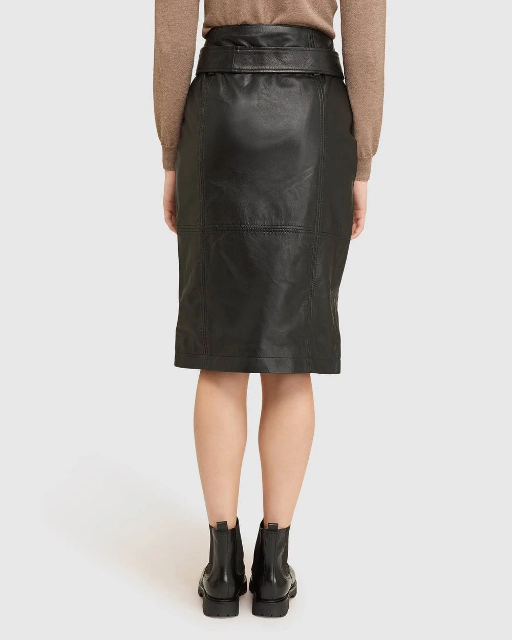 Make a statement in the Regina Leather Belted Skirt by Oxford. This high waisted style is crafted from 100% leather and features a side split, belted waist and is fully lined.