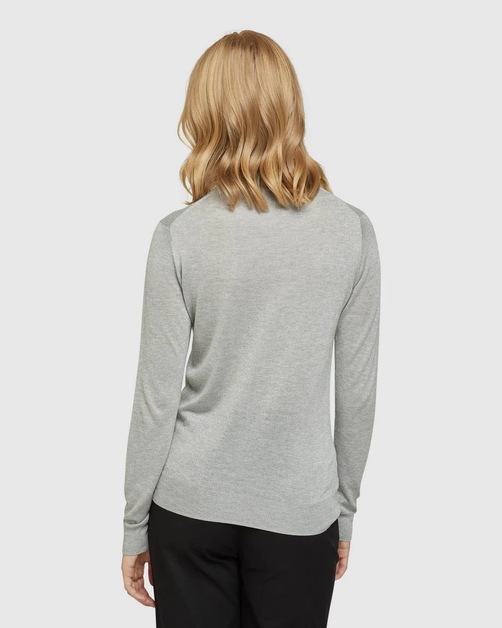 Length: 60cm (Size 8). Our model is wearing a size AU 8 knit and usually takes a size 8. She is 178 cm (5’84”) tall with an 81cm (32″) bust, a 63 cm (25″) waist and 86cm (34″) hips.