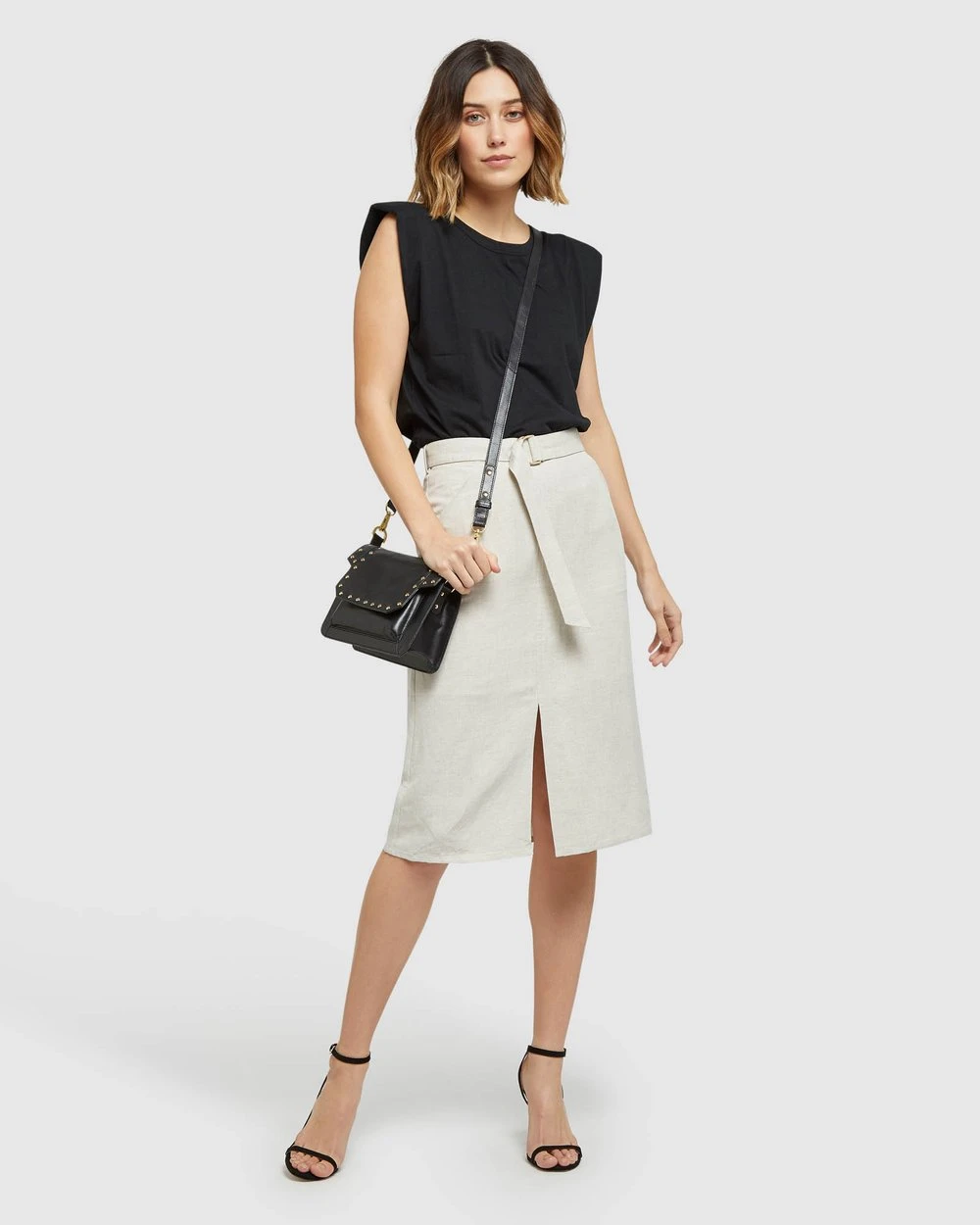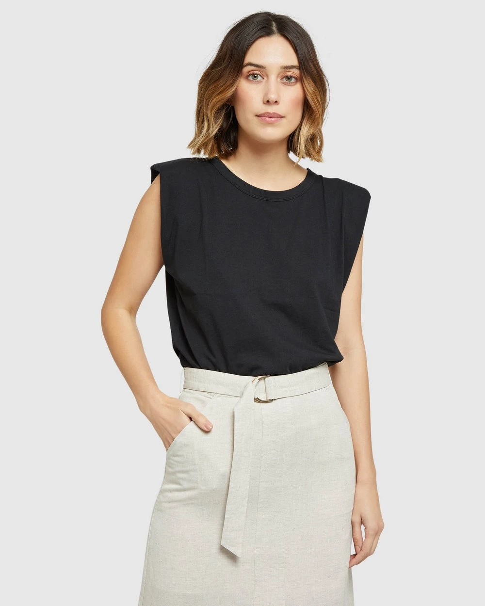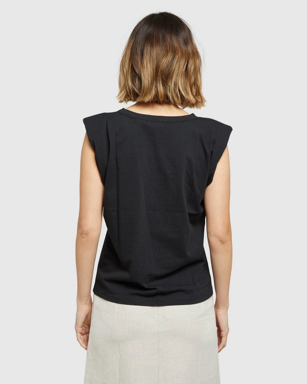 A basic with style, the Oxford Rhianna Tank will be your go-to in the warmer months. Crafted from 100% cotton this relaxed fitting tee features small shoulder inserts to define the sleeveless silhouette. A suitable piece for almost any style, it looks great with a long skirt or paperbag pants.