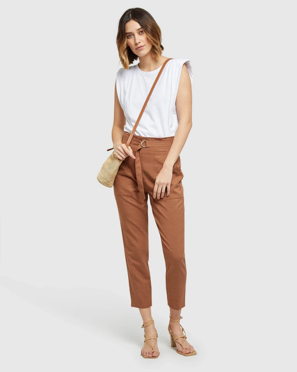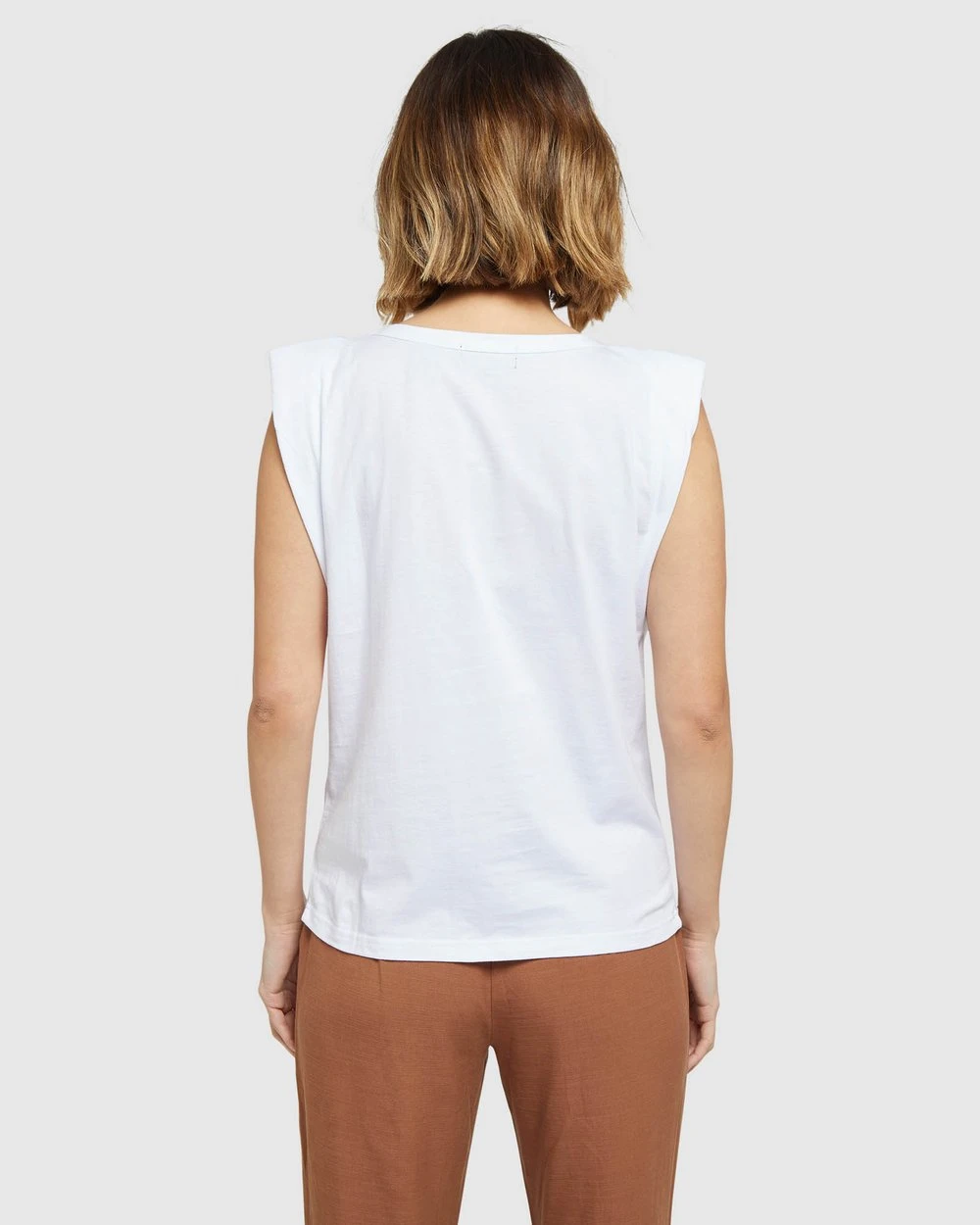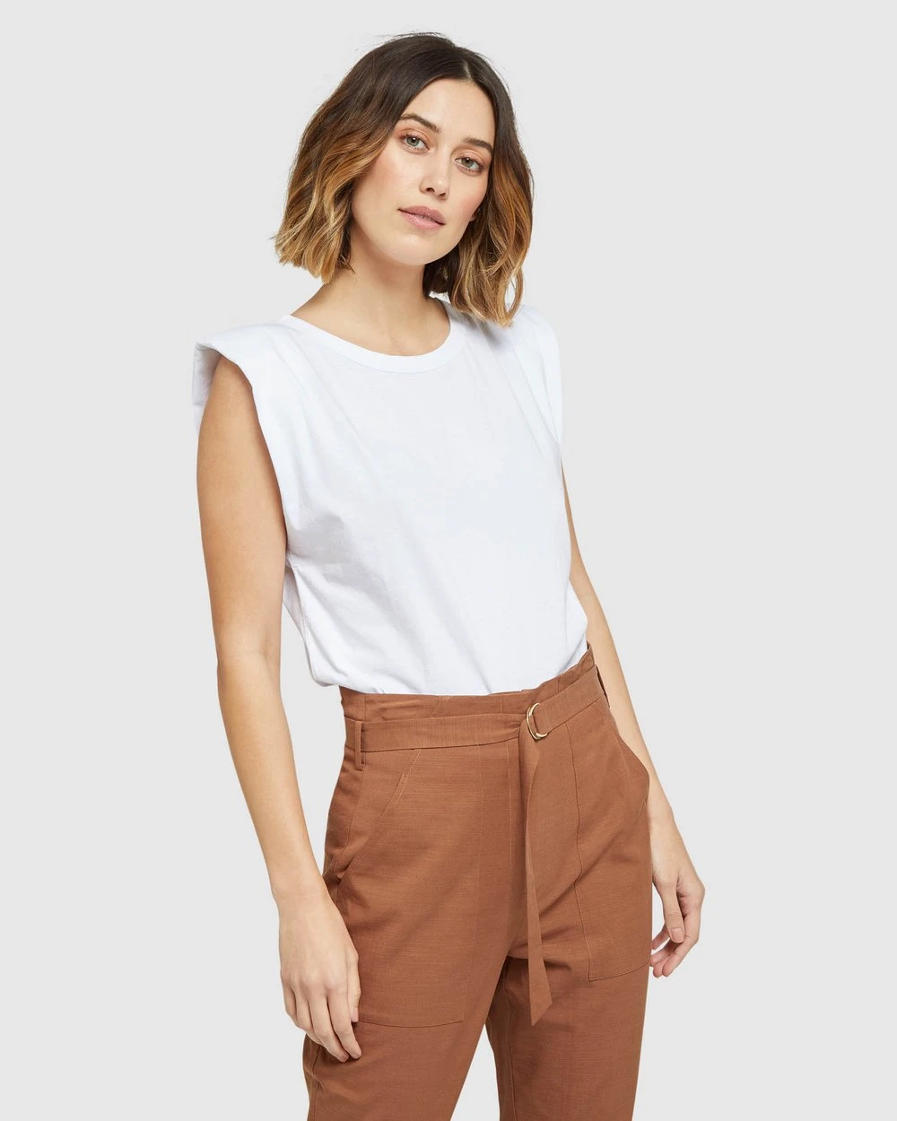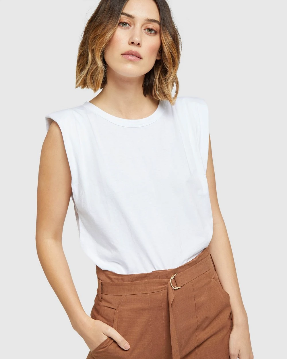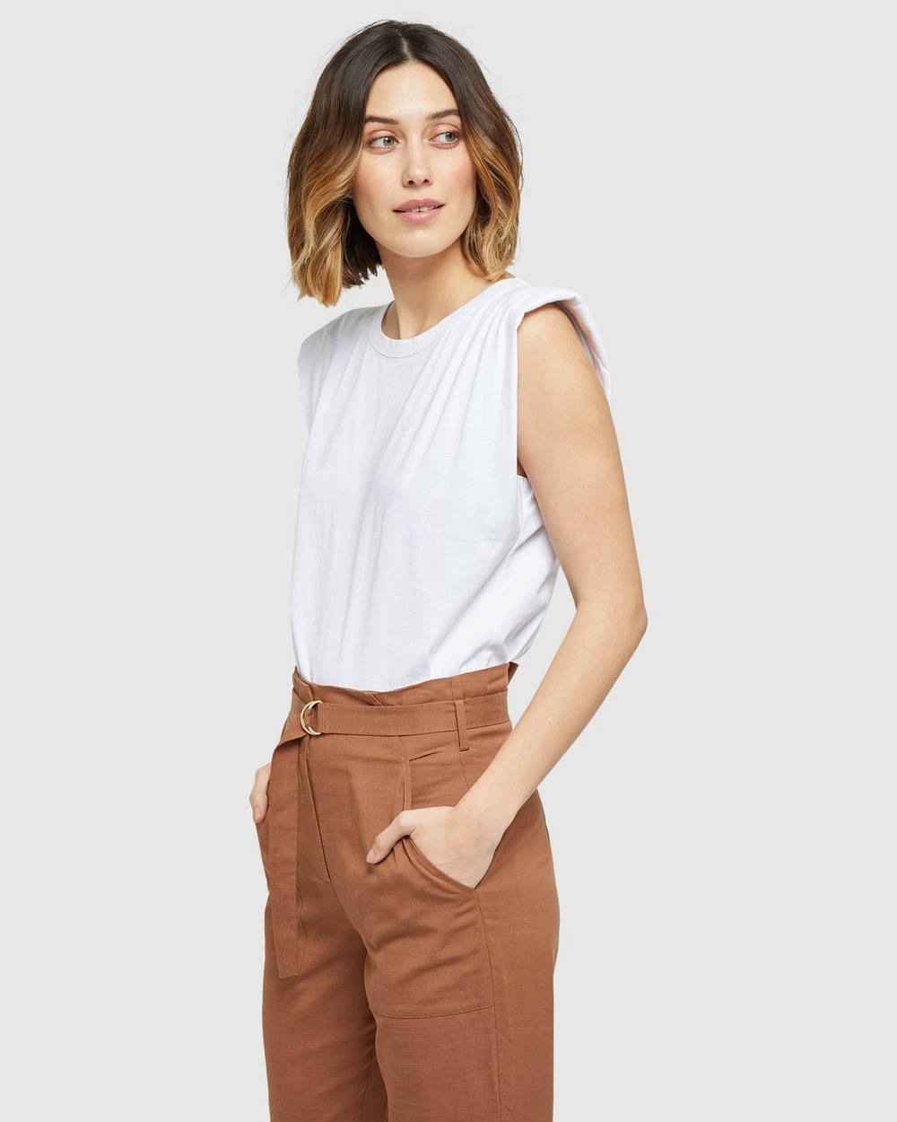 A basic with style, the Oxford Rhianna Tank will be your go-to in the warmer months. Crafted from 100% cotton this relaxed fitting tee features small shoulder inserts to define the sleeveless silhouette. A suitable piece for almost any style, it looks great with a long skirt or paperbag pants.