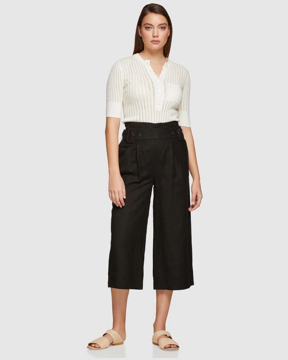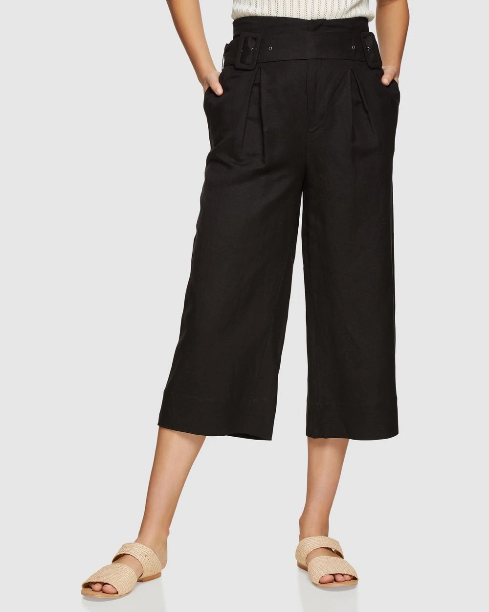 Complete your work to play wardrobe with the Oxford Rikki Crop Culottes. These culottes are constrcuted from a linen blend and sit mid waist with a cropped leg. Style back with a knit or printed top for a chic look at work or play.