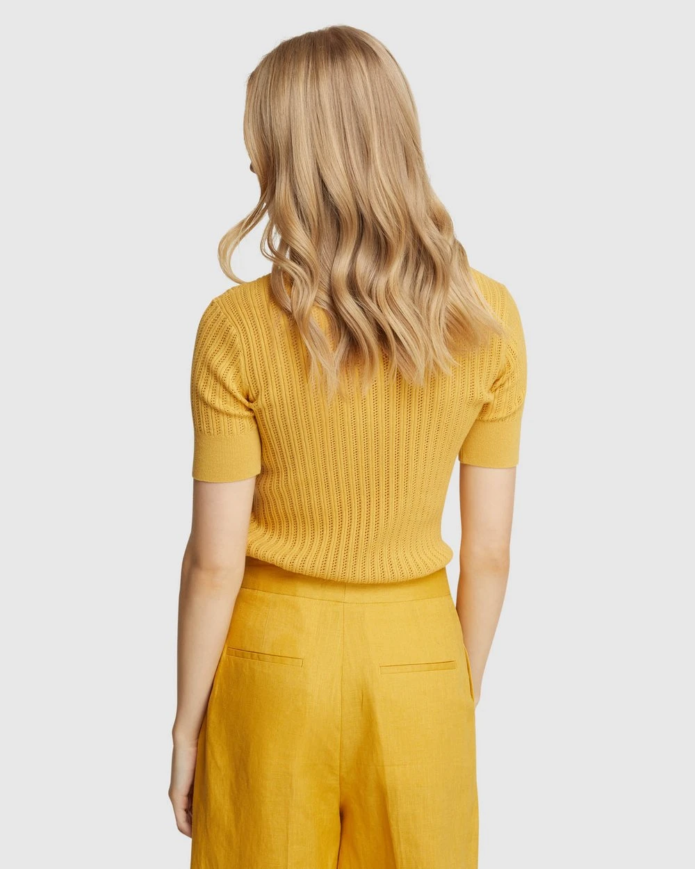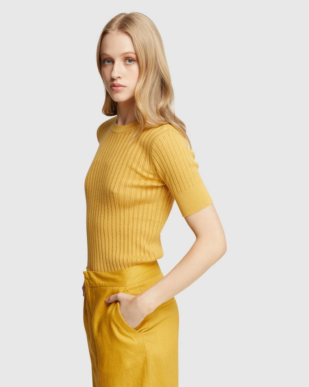 Oxford Rosie Pointelle Cotton Knit Mustard
