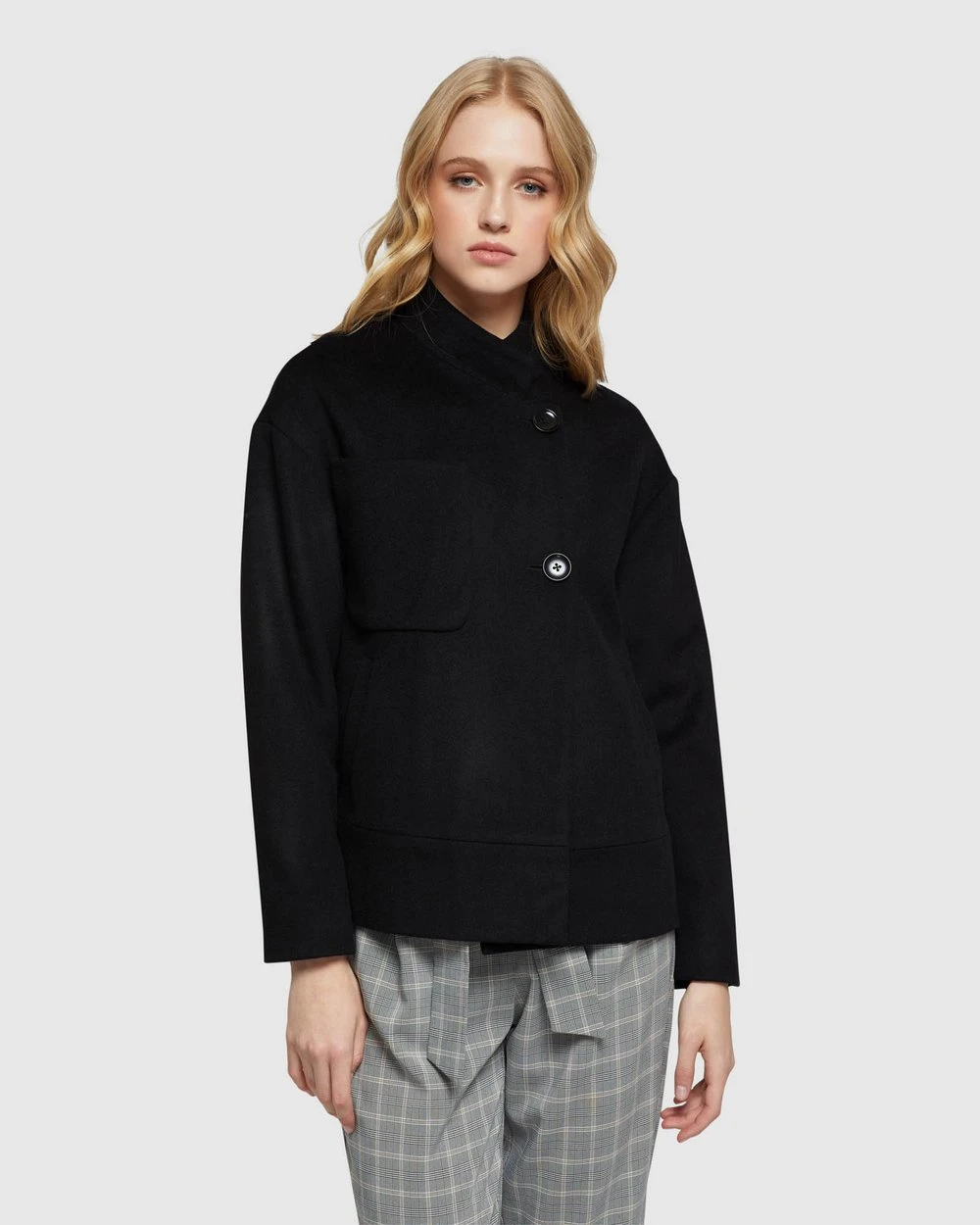 Essential winter style, the?Oxford Sammy Pocket Front Jacket is the perfect outer layer. Part of our wool rich collection this cosy number is fully lined and features a button-up front with a high collar and side pockets. Team it with a smart blouse and checked pants for a look that will take you from desk to dinner.