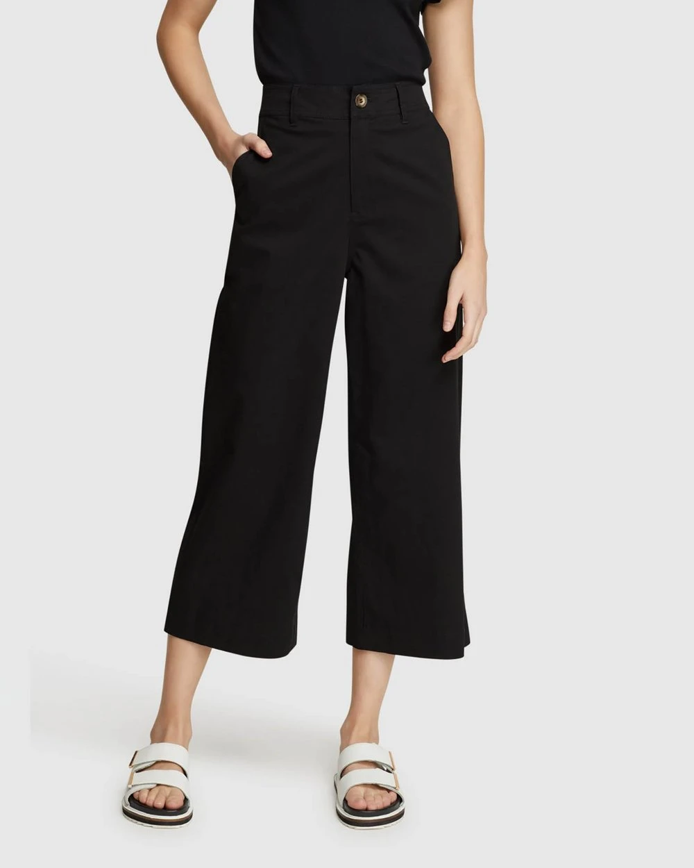 The Sasha Cotton Stretch Culottes by Oxford are a modern feminine look for any occasion. These high-waisted pants are crafted from a cotton blend with a hint of stretch and feature a wide-leg to create a flattering and modern silhouette.