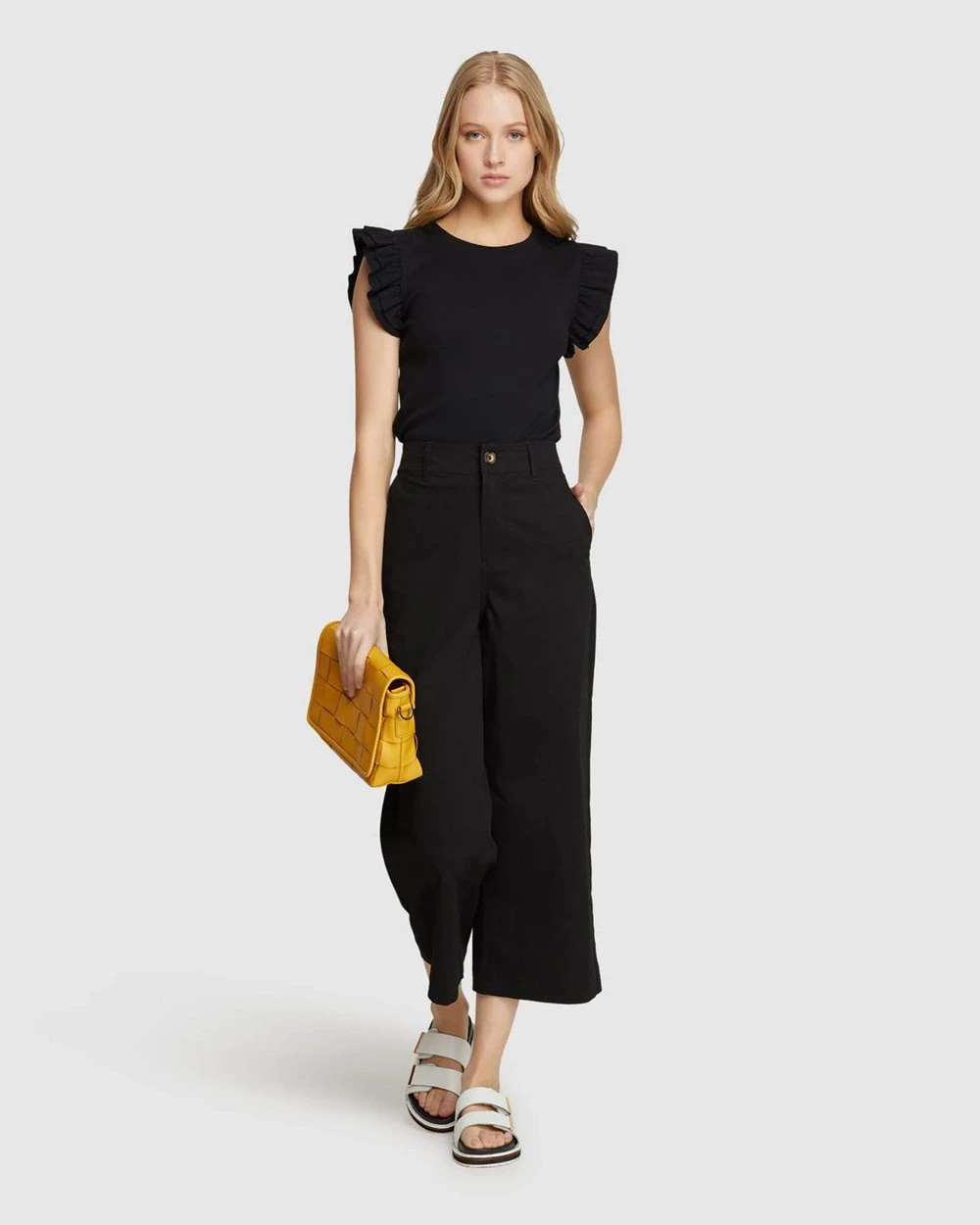 Inside leg: 62.5cm, Front rise: 31.5cm, Leg opening: 28cm (size 8). Our model is wearing size 8 pants and usually takes a size 8. She is 178cm (5’84”) tall with an 81cm (32″) bust, a 63cm (25″) waist, and 86cm (34″) hips.