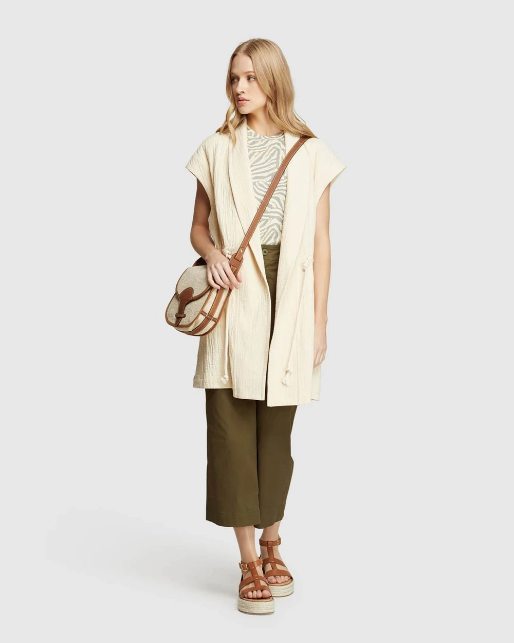 Inside leg: 62.5cm, Front rise: 31.5cm, Leg opening: 28cm (size 8). Our model is wearing size 8 pants and usually takes a size 8. She is 178cm (5’84”) tall with an 81cm (32″) bust, a 63cm (25″) waist, and 86cm (34″) hips.