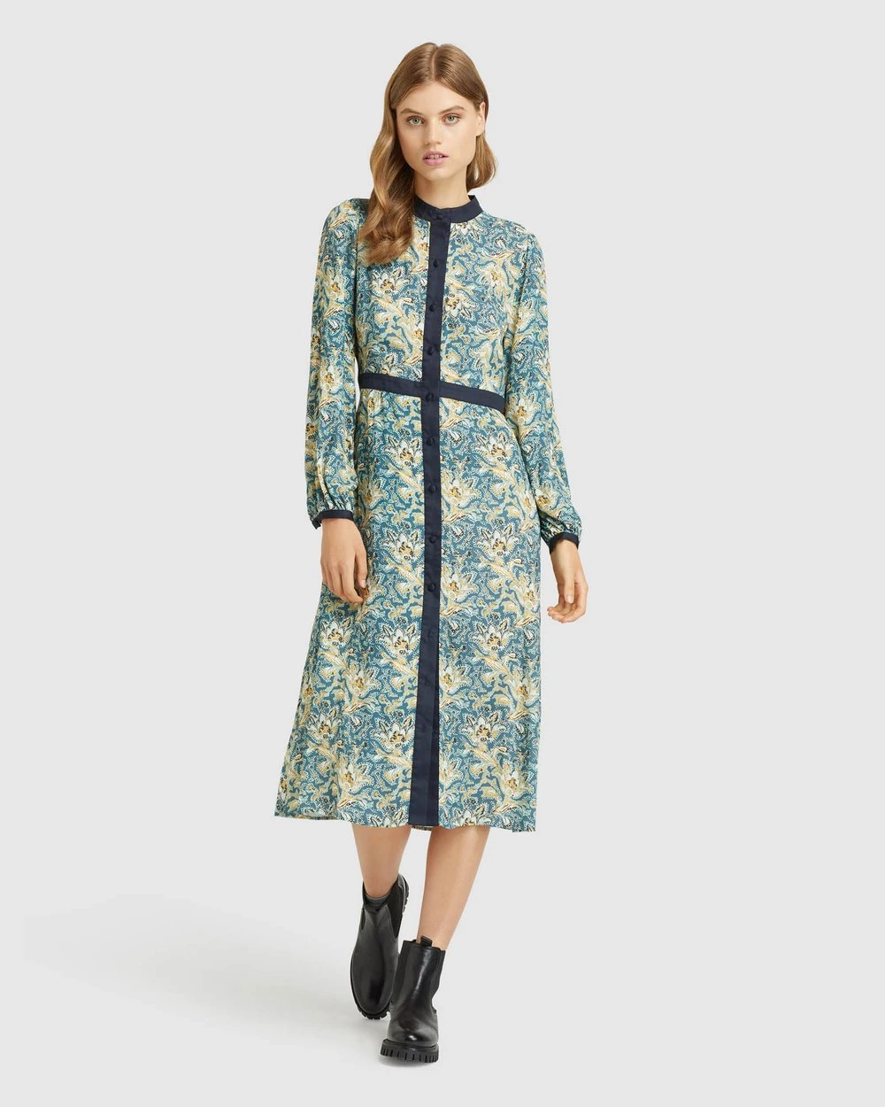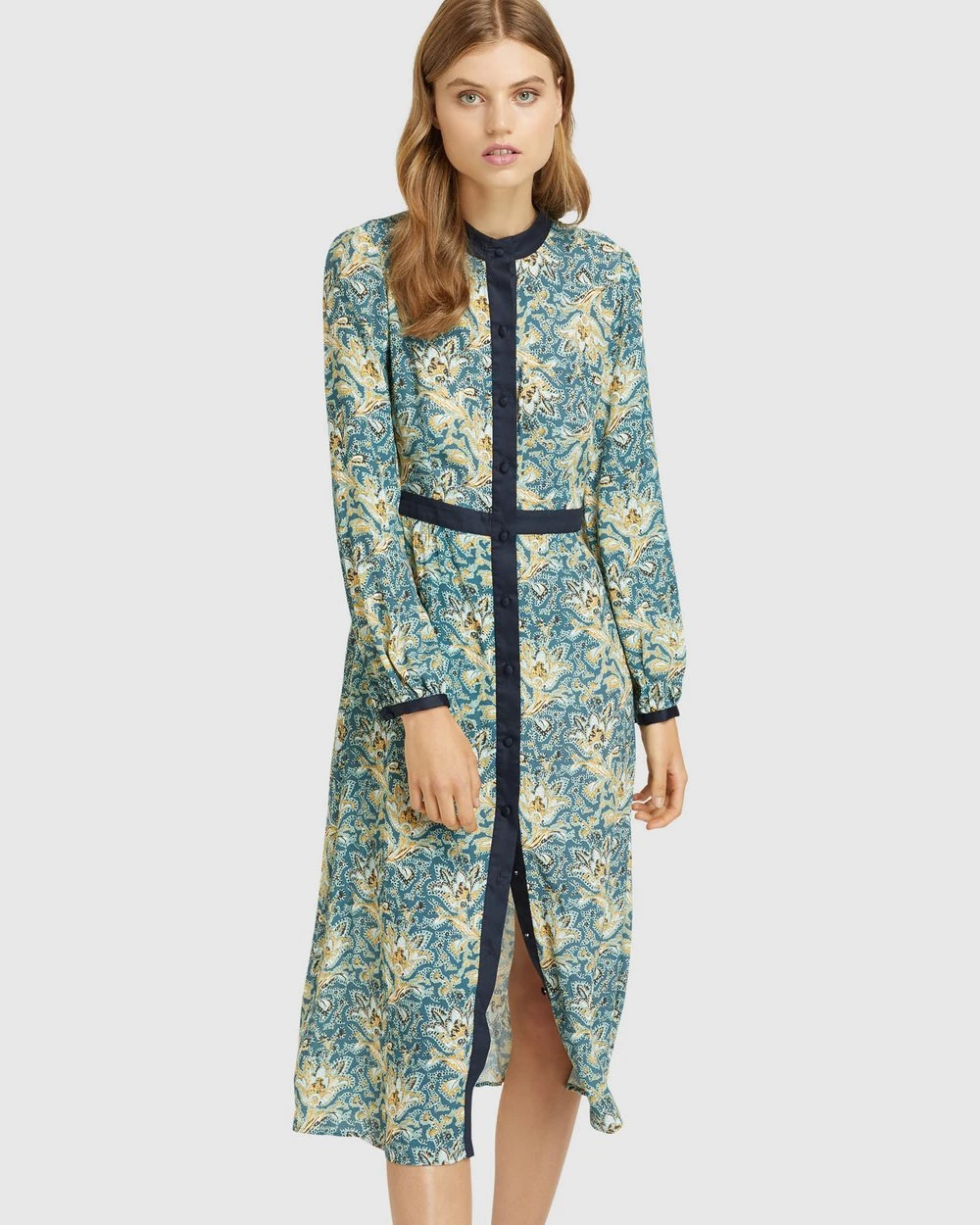 An elegant look with a retro feel, the Seattle Floral Printed Dress by Oxford is crafted from a lightweight fabric with a gorgeous floral print and features contrast trims, single-button cuffs and a high neckline.